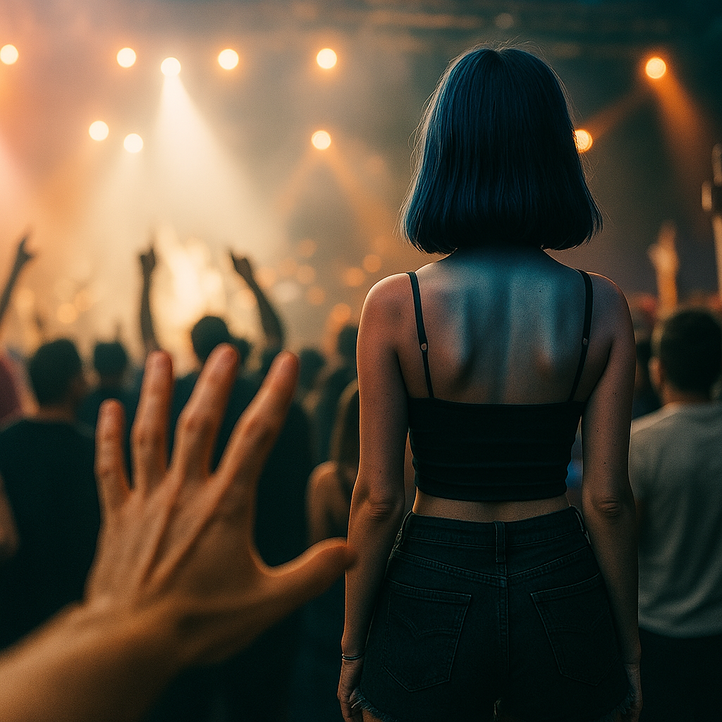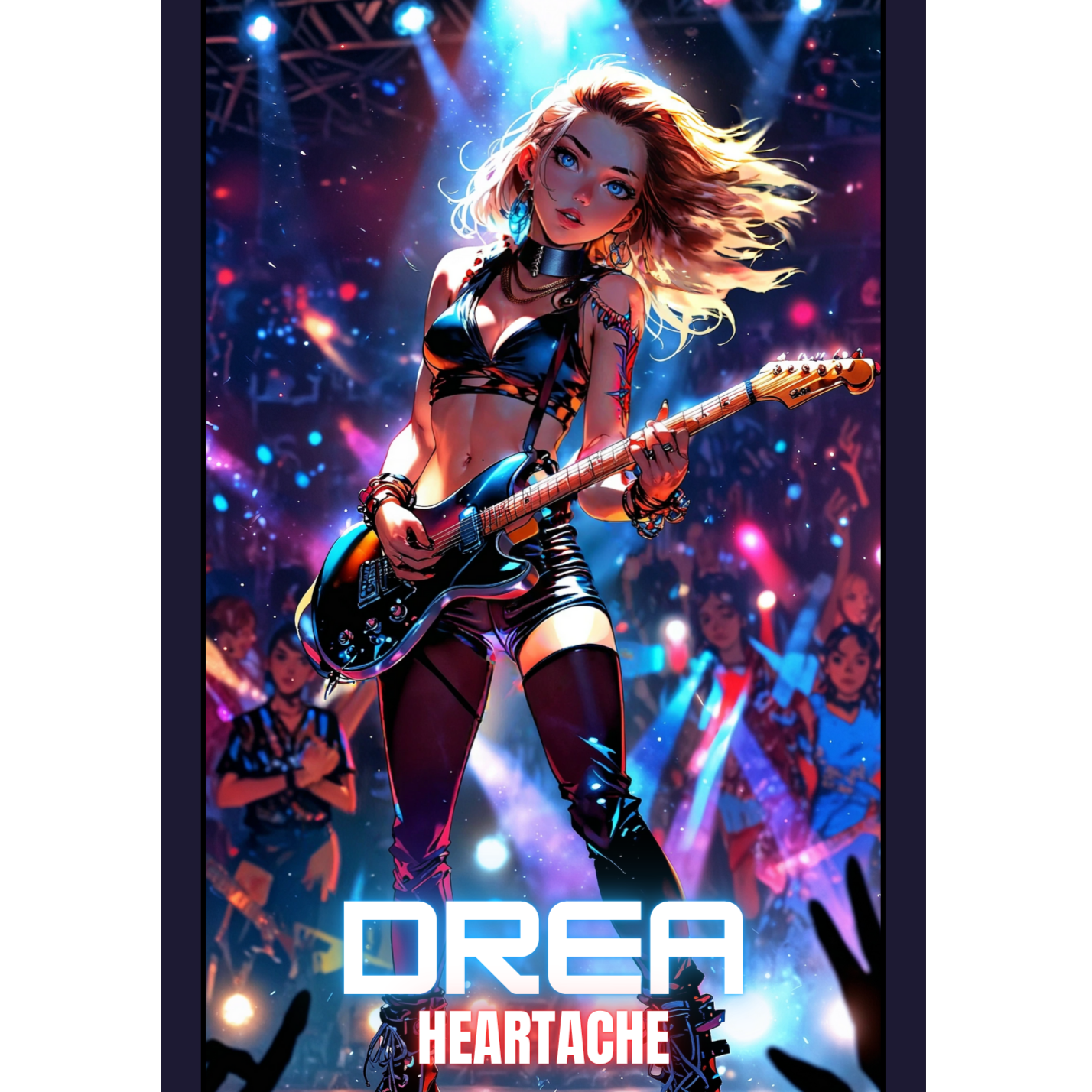 Throughout the piece have occasional chants from the crowd scream "Drea!", Glam rock diva meets hard rock power (⚡) — searing guitar slides, strummed power chords, C & C# chord-driven hooks (✧) Intense drum sections with tom-heavy fills and crash accents Dynamic crowd call-and-response moments, soaring vocals with stage presence (∞) Atmosphere of an arena show — wide stereo guitars (⟶), commanding vocal mix, and punchy rhythm section, ‑Exclude harmonica and droning elements — focus on pure guitar-driven glam energy