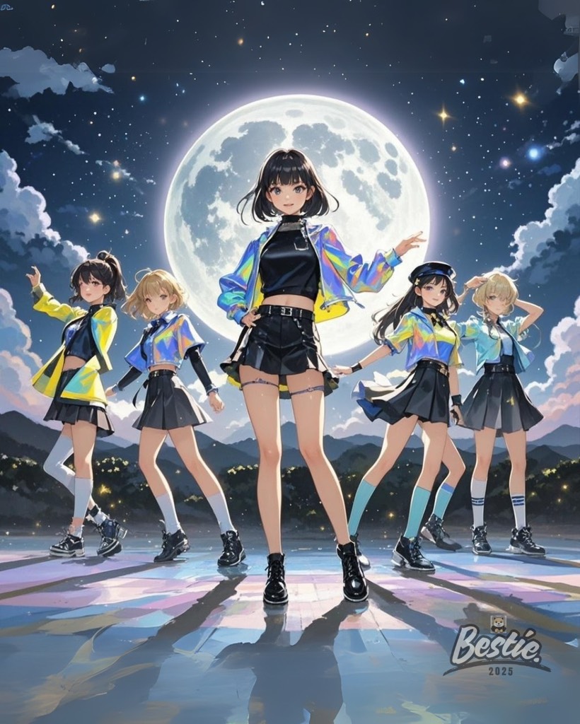 j-pop, anime, fast, upbeat, cute punk, edm, French pop, catchy rhythm, dance, idle