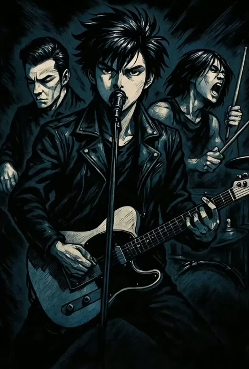 90s Japanese alt rock, raw 3-piece, 150 BPM, rough and restless, Guitar: sharp single-note riffs, cutting reverb chords, light overdrive; occasional feedback, Bass: aggressive, forward in the mix, pushing the groove, Drums: tight snare, strong hi-hat, simple fills slightly ahead, Vocal: male, husky and smoky, sultry & sticky, Half-spoken/half-sung; drag words, Whisper in verses, raw shouts in choruses; cool but emotional, a bit dangerous, Structure: [Intro dirty riff + feedback], [Verse1 minimal (bass + snare; guitar stabs)], [Pre-Chorus build (reverb chords, open hi-hat)], [Chorus full band, edgy], [Break short riff + feedback swell], [Verse2 restless riffs], [Bridge bass + floor tom; whisper vocal; guitar noise fades in], [Chorus2 louder], [Solo raw/noisy], [Outro feedback stop], Atmosphere: gritty underground; rough, unpolished, emotional