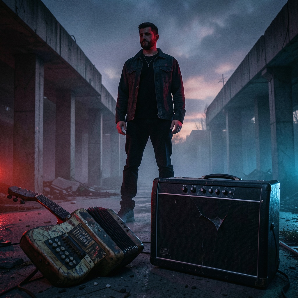 melancholic trap rock fusion, big trap beat drop, heavy distorted rock guitars, emotional cinematic atmosphere, slow tempo, deep bass, subtle slavic accordion texture, powerful male vocal, ‑pop, ‑k-pop, ‑country, ‑reggae, ‑tropical house, ‑dance edm, ‑disco, ‑latin pop, ‑funk, ‑happy acoustic