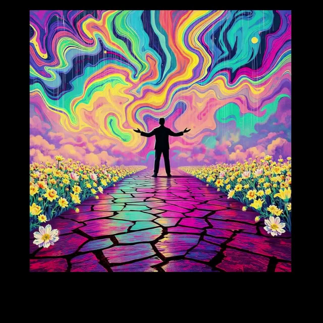 Psychedelic Merseybeat / Art Rock; intimate human male vocal with slight nasal tone and subtle Liverpool phrasing (Lennon-inspired, not imitated); close-mic verses with audible breath and natural imperfections; minimal reverb upfront, widening gently in refrains only; fingerpicked acoustic guitar driving rhythm, warm melodic bass, soft brushed drums with light swing; subtle tambura-style drone underneath; occasional reverse guitar textures used sparingly; avoid lush dream-pop wash or cinematic swell; keep arrangement grounded, present, and slightly raw; dynamic build comes from phrasing and layering, not volume