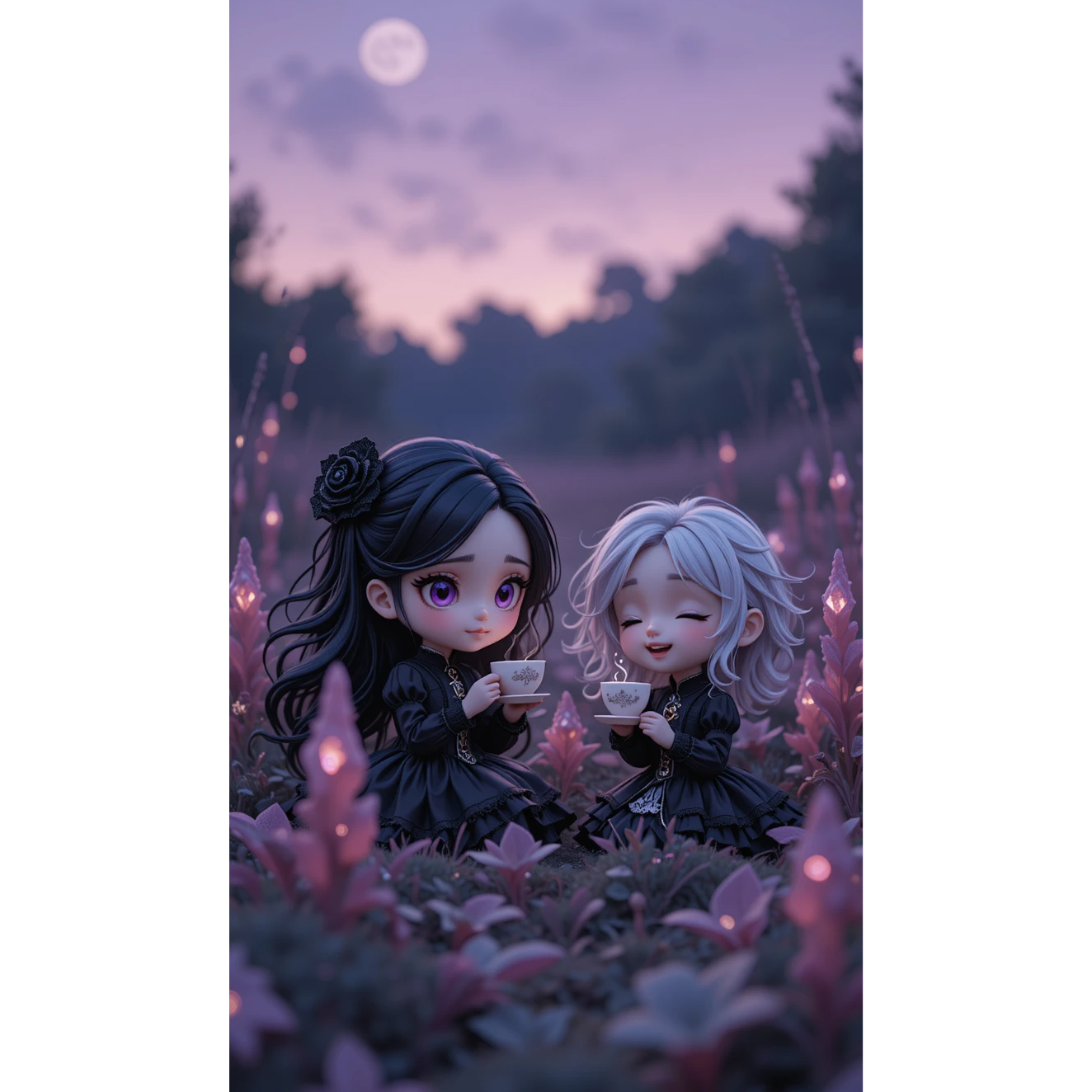 🎚️ Vibe: Hypnotic, Intimate, Whimsically Melancholic, Velvet & Lace, 🕯️ Vocal Style: Smoky contralto with layered ghost harmonies and whispered ad-libs, Reverb-heavy and analog-filtered, #ChibiGoth #ContraltoSeraph #TwilightTea #WitchPop #Dreamwave #SilverSecrets #AnimeAesthetic #LaceAndLament #GothicLullaby #SUNOFam #Vaporlullaby #VelvetNocturne