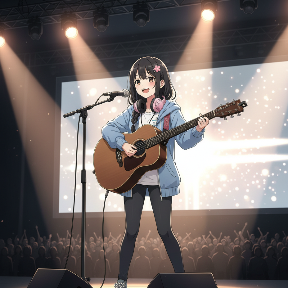 Live concert, lo-fi, emotional, nostalgic warmth, acoustic guitar, Bittersweet, kokomi01 vocal