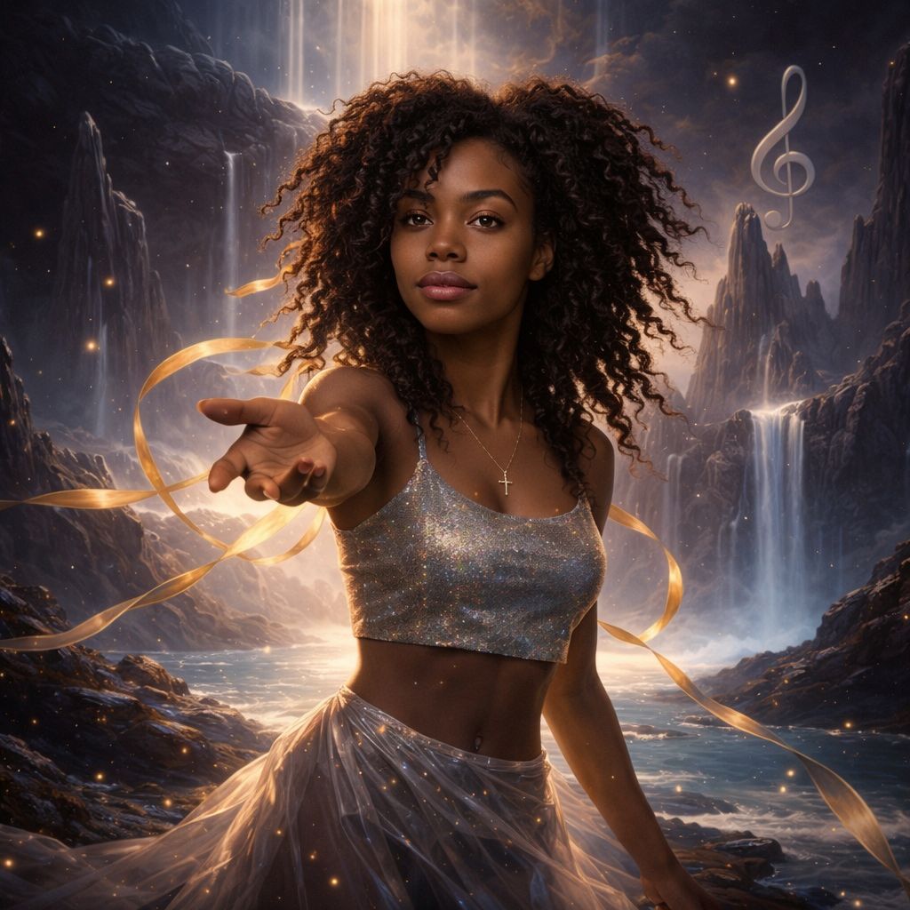 Spoken word R&B / alt-pop with cinematic layers, Female voice (Shay Rose), dreamy sung refrain “When I first laid eyes on you, ” and intimate spoken passages, Use warm Rhodes/pads, soft lo-fi drums, and atmospheric synths, After each spoken section, add short 2–4 bar instrumental swells (ambient pads, rising synths, reverb guitar, or bass pulses) to bridge into the sung refrain, Build harmonies on each refrain—solo first, layered second, stacked cosmic last, Add subtle cosmic FX (reversed synths, echoes) during imagery like clouds/ancestors, Sparse percussion under spoken parts, fuller textures on choruses, End by stripping to pads + fading vocals, Mood: poetic, cinematic, intimate, cosmic, hypnotic