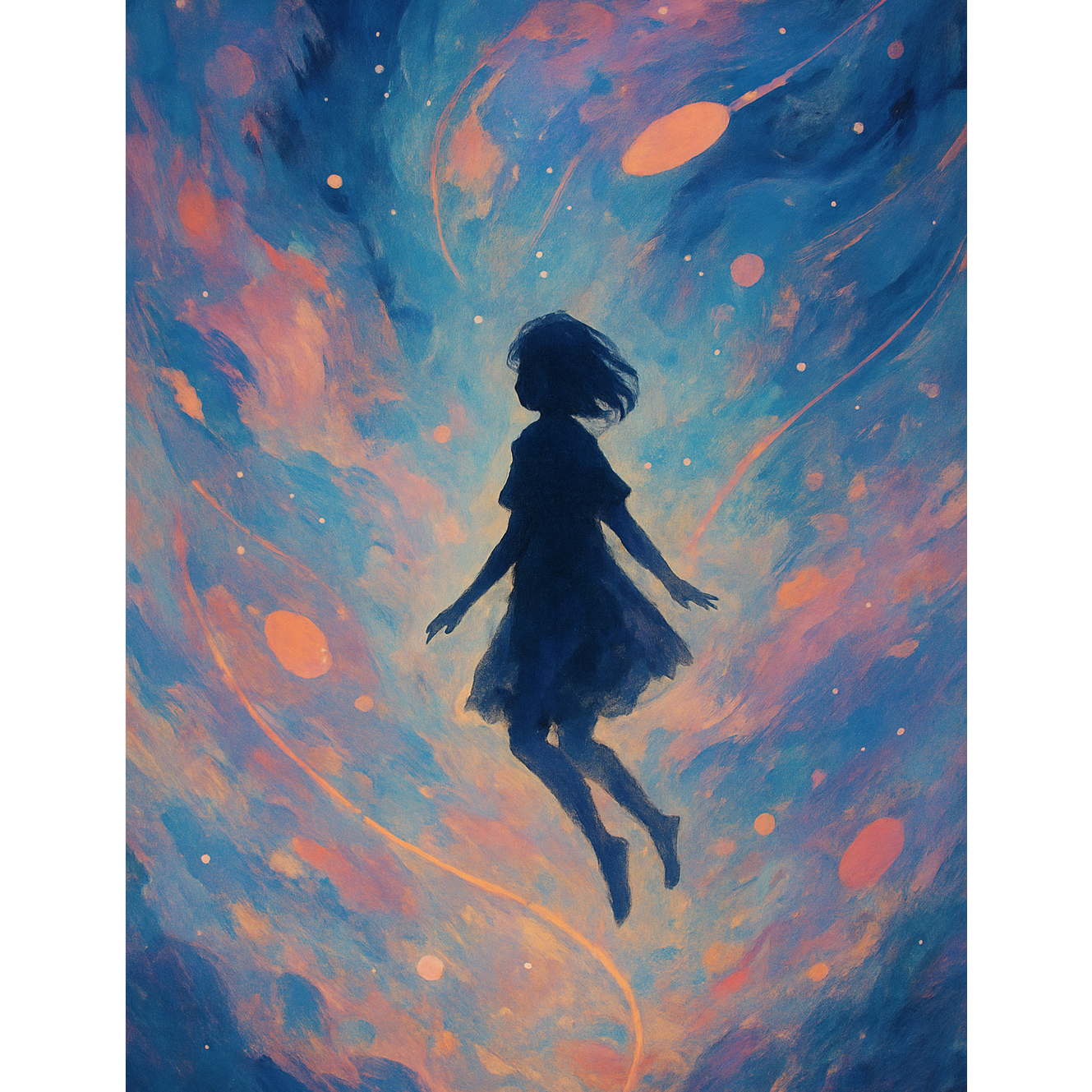 Instrumental ambient-IDM fusion designed to evoke floating through an abstract dreamscape, Features layered, evolving textures with soft granular pads, distant chimes, and subtle reversed tones, Delicate glitch rhythms and fragmented percussion add motion without disrupting the stillness, A wide stereo field with modulating synths and spectral filters enhances the sensation of weightlessness, Melodic motifs are minimal and drifting—fragments of harmony that rise and dissolve like passing thoughts, Occasional pulses and rhythmic noise create gentle turbulence, evoking moments of cosmic dissonance, The structure is fluid and nonlinear, encouraging immersion and contemplation, Perfect for expressing both detachment and deep emotional resonance in an abstract form, Dolby Atmos