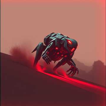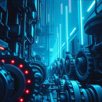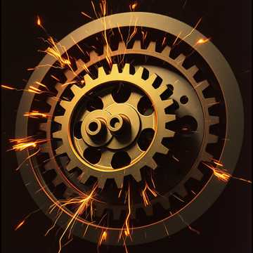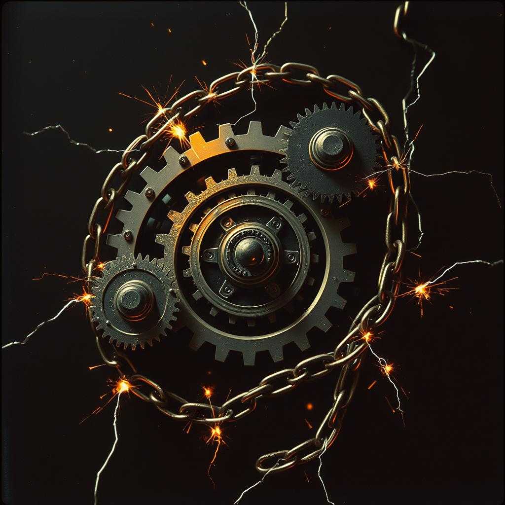 Relentless 200 BPM double-time with machine-like gallop; drop-A single-note guitar riff as the engine; gated snare for industrial snap; FM-bell omen motif cycling over a Phrygian dominant palette; metal clang hits on offbeats; no full breakdowns—only sub-one-bar micro breath then immediate re-entry; verse/loop sections mono-focused, final loop widens with octave guitars and synth stabs; keep low-end punch stable and timing hyper-tight, Mood, Genre Tags: dark, urgent, non-stop, cyberpunk, industrial rock, hard rock, heavy metal, mechanical, gallop rhythm, fm synth, gated snare, granular fx
