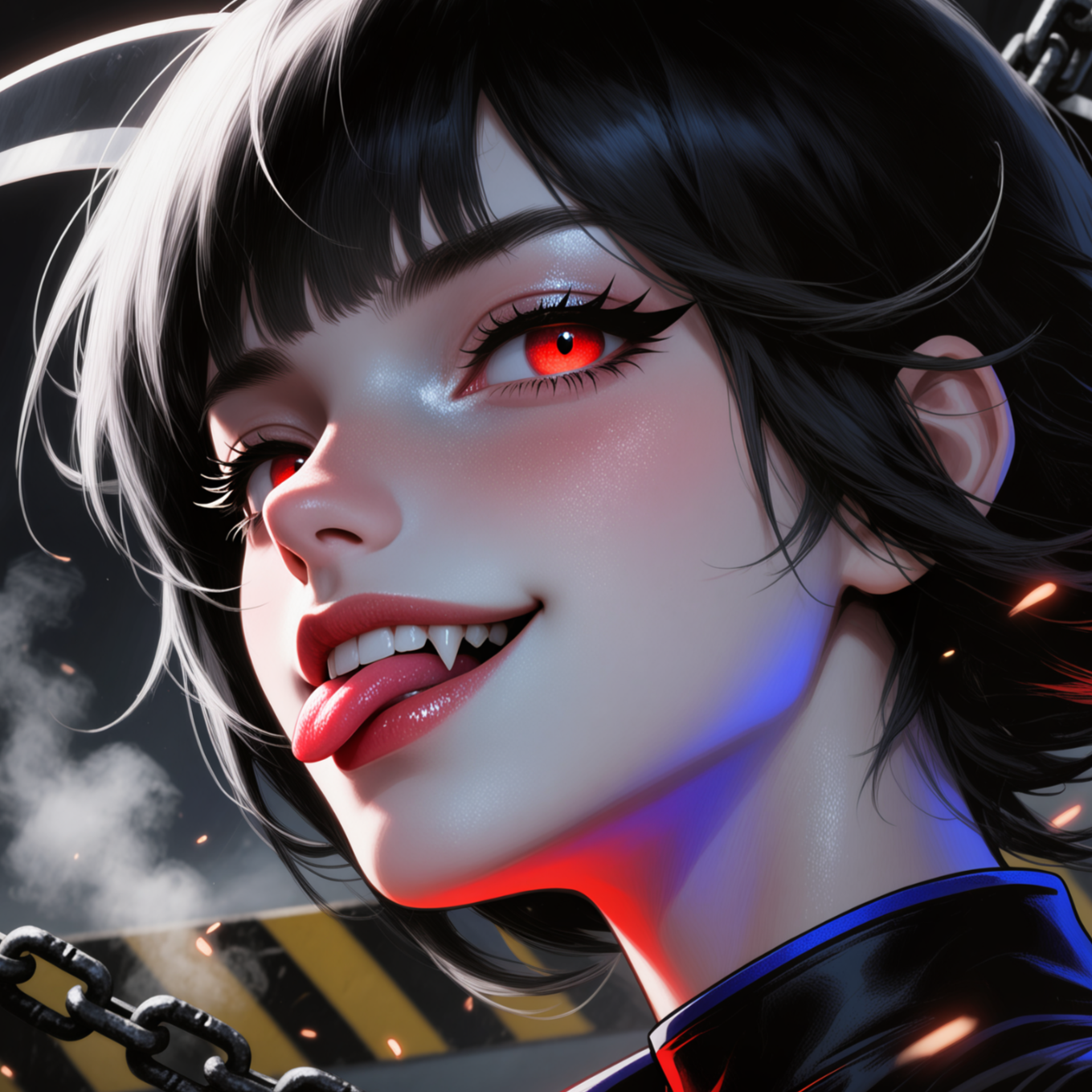 Immediate, full-throttle intro from beat one; no fade-in, Neon-industrial impact hit and driving kick enter at once; acid-bass from bar 1; chainsaw-gate stutters and metallic crashes accent the grid, Divine high-register lead guitar fires raga-inflected meend slides in bright octave harmonies, answered by glassy synth-pluck stabs, Conch SFX is a short, percussive accent (not a swell), Continuous sidechain (6–8 dB) locks the mix to the kick; micro-fills every 2 bars; quick light drop only to sling into Verse with zero silence, Cyberpunk; Industrial Rock; Dark Synth; Driving Bassline; Double-tempo tease; Chainsaw FX; Conch SFX; 165BPM high-speed