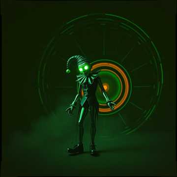 Industrial hard rock instrumental, 145 BPM in E minor, Start with dirty lo-fi drums and a low, rising fuzzy guitar motif; lock into a danceable four-on-the-floor with heavy swing, Contrast relentless groove with tight, machine-staccato “march” riffs and stop-and-go prank hits evoking a trickster joker archetype (no licensed IP), Add rights-cleared “pre-battle” whispers/laughter, filtered psychedelic arps, a dirty synth-bass feature, a chaos guitar freak-out, and a brief 120→145 BPM drop/relaunch, Mix fat and groovy: kick+bass centered, wide fuzz guitars, SFX forward, bus comp 2:1, Mood, Genre Tags: industrial metal, groove metal, electronic rock, stomping, menacing, groovy, apocalyptic, horror, mythology, fuzz guitar, instrumental