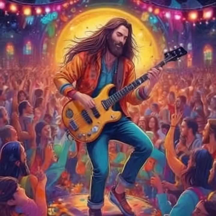 psychedelic, synthesized wave dance, electronic textures, dreamy synths, hypnotic rhythm, ambient trance, retro-futuristic, cosmic groove, Heavy power chords, grungy textures, deep resonance, distorted strumming, dark rock vibes, 90s grunge essence, drop D tuning, fuzzy guitar tones, raw energy, low-tuned riffs, distorted power chords, raspy tones, and aggressive strumming
