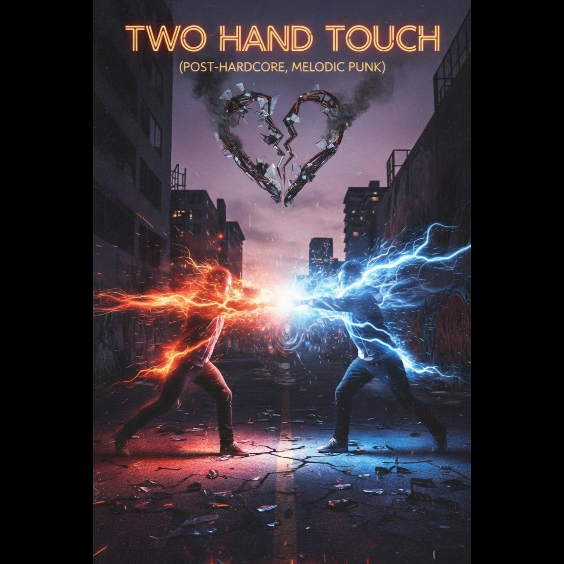 Style: Post-hardcore / melodic punk-influenced, Fast tempo, riff-driven guitars, energetic drums, playful but aggressive edge, Modern clean production with raw punk energy, Male vocals with shout-along hooks and melodic grit, Mood / Theme: Reckless chemistry, impulsive connection, living in the moment without rules or promises, Physical and emotional collision for the sake of feeling alive, Lyrics direction: Fast, bouncy verses, quick rising pre-choruses, big chant-ready choruses, Bridge drops into half-time briefly before bursting back into a faster final chorus, Vocal delivery: High-energy, confident, playful, Shouted lines and gang-vocal moments mixed with melodic hooks