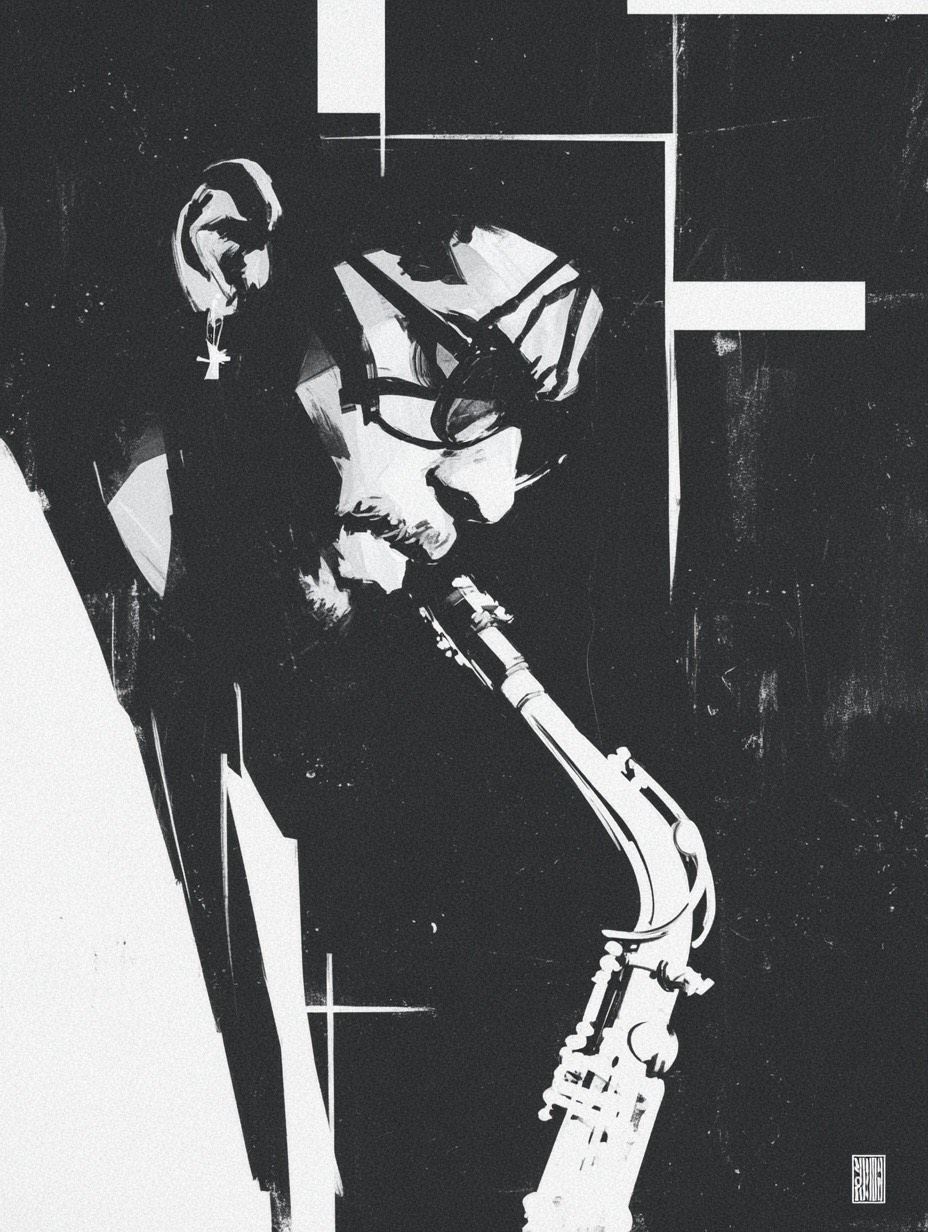[Instruments: Cool-toned saxophone, slow mechanical breakbeat drums, metallic percussive textures, industrial ambience, low-frequency pulses]