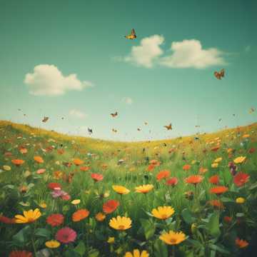 dulcimer, pan flute, tambourine, harp, chimes, light enchanting female voice, mystical folk chant, fantasy dream-pop