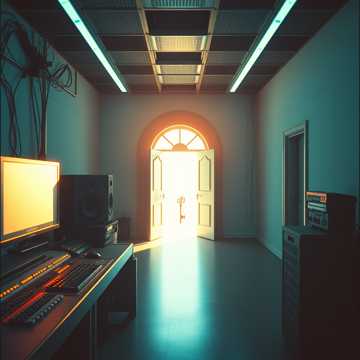 Hybrid orchestral-electronic, 108 BPM in E minor lifting to G major, Ambient synth pads and distant piano open, then a steady low pulse and ticking percussion enter, Rhythmic strings build under male vocals, sidechained bass swells into cinematic drums, Chorus lifts with wide synth leads, stacked gang-style backing vocals, and big tom accents, Final hook soars with full string ensemble, bright arpeggios, and a confident, open mix for anthemic sing-along energy, electronic, ambient, empowering, soaring, orchestral, rhythmic