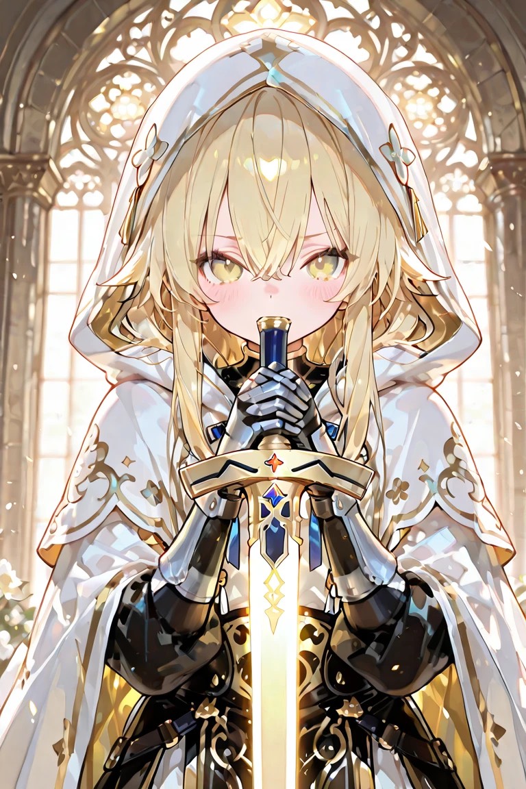 Theatrical folk-pop with a whimsical, story-like feel, Acoustic guitar, light percussion, and playful strings set a folk atmosphere, while dramatic orchestral swells and choir touches appear in the chorus to heighten the sense of destiny, Female vocals, expressive and slightly humorous, telling the tale of an ordinary girl who accidentally pulls out a holy sword, The tone balances lighthearted humor with fantasy drama, like a modern pop musical