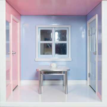 pop, Lo-fi uncanny indie pop with deadpan female vocals; soft, slightly warped synth pads and a gently overdriven guitar looping lazy chords, Sparse, swung drum pattern with subtle glitch stutters at section transitions, Verses stay close and dry; choruses bloom with doubled vocals and lightly detuned harmonies, DIY-room reverb on the guitar, tape-warbled master bus for an eerie-cute, unsettling shimmer, glitch, soft, tone, lo-fi, indie pop, vocal, minimal