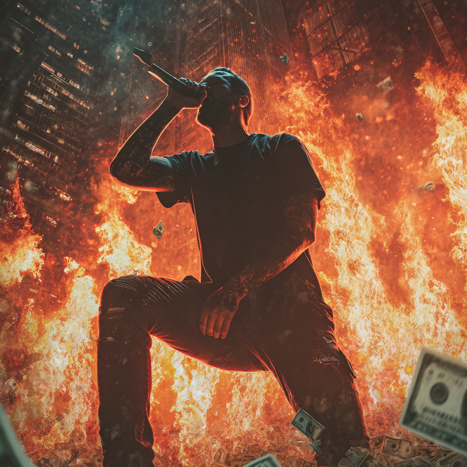 Metal, nu-metal, alternative rock, modern, heavy down-tuned distorted guitar riffs, driving drums with strong backbeat, deep bass groove, raw emotional rap-sung male vocals with rap verses and melodic chorus, powerful piano melody in chorus, melancholic yet intense mood, iconic nu-metal anthem