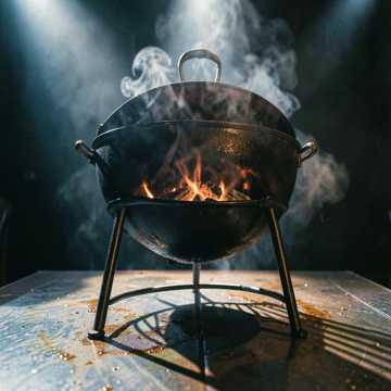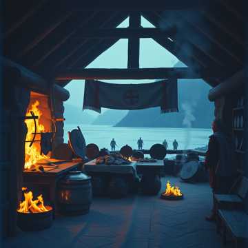 Epic folk-metal stomp with male vocals; floor-tom war march, crunchy drop-tuned guitars, screaming fiddle on the hook, Verses start in a close, growled storytelling tone, then explode into gang-shouted choruses with stacked harmonies, Huge, chest-beating drums, distant horn stabs, and a final halftime chant that feels like a warband around a roaring pit