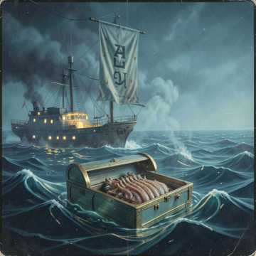 Rowdy pirate shanty with stomp-and-clap groove, raucous male vocals and gang chants on the hook, Fiddle and wheezy accordion ride a swinging folk drum pattern; choruses explode with stacked “hey!” shouts and crowd sing-alongs, Bridge drops to just boot stomps and low humming before the final chorus turns into a tavern-style shout-along, theme