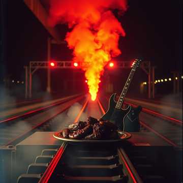 metal, High-gain twin guitars chug in drop tuning over a galloping double-kick groove; male vocals roar and snarl with gang-shouted hooks on the title line, Verses stay tight and driving, with palm-muted riffs leaving space for gritty storytelling; chorus explodes with wide power chords and octave leads, Mid-song breakdown drops to a halftime stomp with pinch harmonics and call-and-response vocals, then rips into a blazing shred solo before a last, anthemic chorus