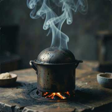 Deep, droning monk-style male vocals in unison and low harmony, slow ceremonial tempo with frame drum and distant gong; verses feel like an ancient procession, chorus opens wider with stacked chants and call-and-response; subtle low drone and throat-like overtones under the main vocal to give ritual weight and smoke-filled resonance