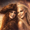 Cinematic dark arena rock, Hans Zimmer inspired, 80–90 BPM, Slow atmospheric intro with deep pads, distant ocean ambience and low drones, Gradual epic build with powerful cinematic drums, bass pulses and wide, minimal electric guitar textures, Female Duet: Two distinct female vocals alternating: one deep, warm, grounded (Scarlett – ocean), one higher, ethereal, airy (Aevri’Meer – stars), Verses intimate and sparse, voices answer each other, Tension builds in pre-chorus with layered harmonies, Massive emotional chorus with both voices united, choir-like backing vocals, orchestral swell (strings, brass), Bridge stripped, mystical, almost whispered, Final chorus huge, uplifting, cinematic climax, Theme: spiritual sisterhood, shared karma, healing, protection, eternal bond beyond time and space, Two different voices that is very important!, panflute