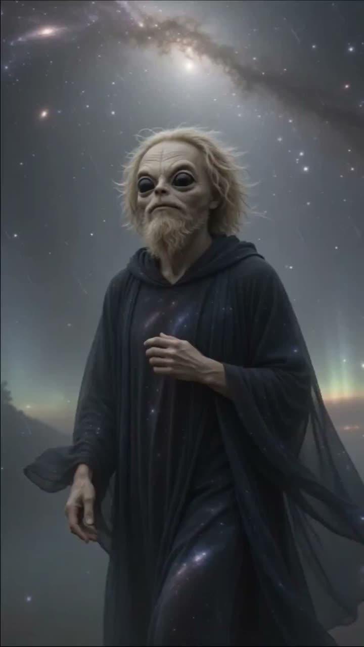 Cosmic cinematic folk, deep ambient synths, tribal drums, distant choir, mystical atmosphere, slow 85 BPM, Emotional male vocal with echo, space ambience, epic chorus, feeling of a lonely alien wanderer between stars and earth