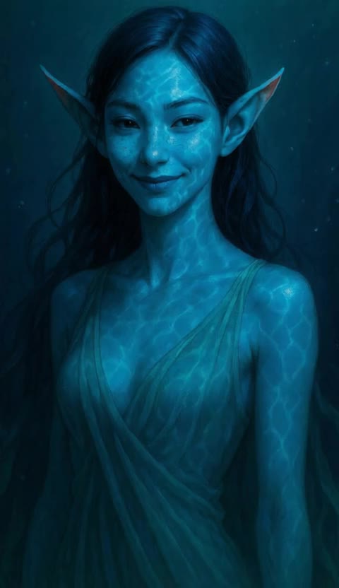 Progressive delicate psytrance-EDM fusion, female delicate clear voice, operatic, ultra delicate, ocean vibes, exotic scale, sudden bending tones, Bass: cinematic pizzaz, complex + multilayered, shark riff, Remaster: Professional organic remaster from a chiptune, Award winning sea reef musical production, new artful fusion