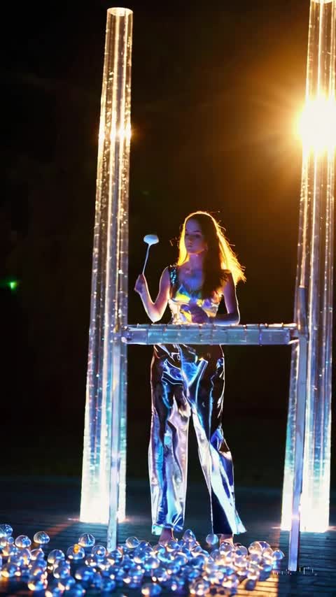 Epic female vocals, Rock Fusion, Ethereal and Powerful, Medium-Fast, Glass marimba + electric guitar and drums, Minor, Syncopated rhythm, Layered textures