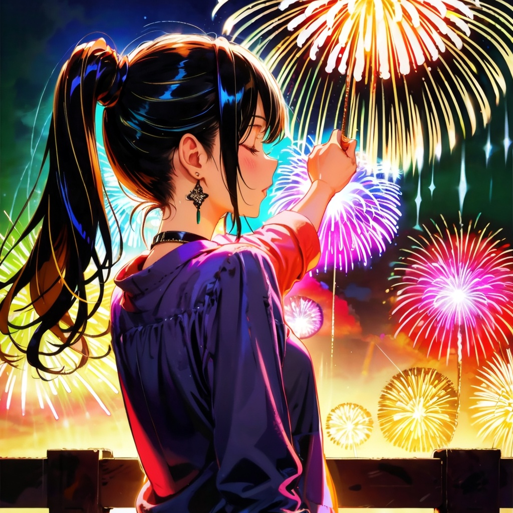 Style: Retro Surf Rock, Energetic Rock, Drum and Bass Influence, Synthpop Elements, Electronic Pop, Upbeat Summer Vibes, Vocal: Male Lead Vocal, Powerful with Slightly Rough Tone, Clear and Dynamic, Instruments: Electric Guitar (Clean, Reverb-heavy), Bass Guitar (Groovy, Punchy), Drums (Classic Surf Rock Beat with Drum’n’Bass Style Kick), Synthesizer (Light Electronic & Synthpop Sounds), Percussion (Shakers, Tambourine), Prompt: Create an energetic retro surf rock track blending clean, reverb-heavy electric guitar riffs with groovy, punchy bass and surf rock drums infused with drum’n’bass style kicks for powerful “don” explosion effects, Add light synthpop and electronic pop elements for sparkling textures like fireworks, Male lead vocals deliver lyrics with powerful, slightly rough yet clear tone, expressing excitement and romance of a summer beach firework festival, The sound should be upbeat, catchy, nostalgic, with a modern electronic edge