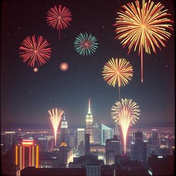 Rhythm: Irregular pulse with sudden bursts, explosive accents (to simulate firework blasts), stuttered syncopation, metric collapse