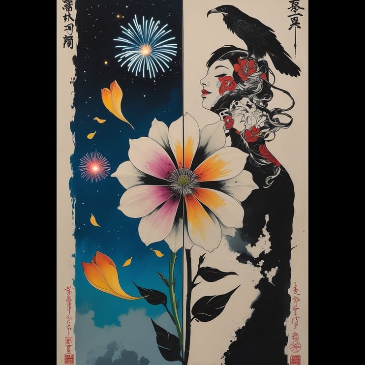 Female Vocal Fixed, Japanese, V-Rock, bpm100, Chord Progression-[G-A-Bm-A-G-A-Bm-D-G-A-Bm-A-G-A-Bm-D], [Verse: G-A-Bm-A-G-A-Bm-D-G-A-Bm-A-G-A-Bm-D], [Pre-Chorus: G-A-Bm-F#m7-G-A-Bm-D-G-A-Bm-F#m7-G-A-G-A], [Chorus:G-A-Bm-F#m7-G-A-Bm-D-G-A-Bm-F#m7-G-A-G-A], fireworks sound effects, Marimba and Strings, piano, image of the song Verse-clean guitar, Pre-Chorus-Overdrive Guitar, Chorus- Guitar1 Left Eq acoustic Guitar- Guitar2 Right Eq Distortion Octave Guitar, Solo piano and guitar and fireworks sound, fireworks sound effects, The whole thing feels LIVE, A sad worldview, Summery sounds and fast-paced sounds, The song begins gently and slowly
