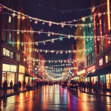 Más ritmo, perfecto para fiestas familiares o callejones iluminados, Palabras clave: “bells”, “lights”, “risas”, “todos bailando”, “glow”