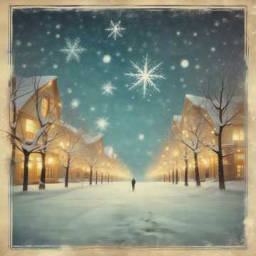 Walking home under snowy skies, lamps reflect in your sleepy eyes, No loud songs, just the crunch of snow —