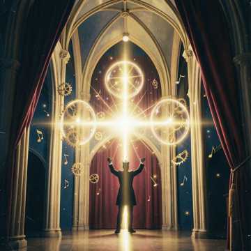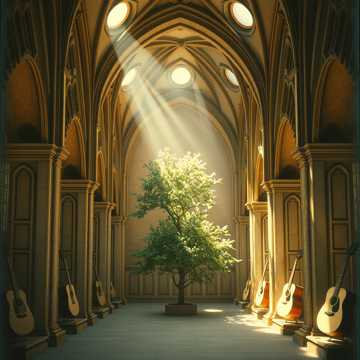 Hard Rock opera, Blues, Southernrock, with grazzy smoke male voice and a soprano voice woman in the choir, wonderful and majestic, with piano, harp, electric guitars, bass and a big drum solo