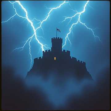 Ambient, epic, soundtrack, dungeoncore, dark but empowering, haunting drums, thunderous bass, rifting guitars, atmospheric tones, distorted guitars, raw vocals, glitchy effects