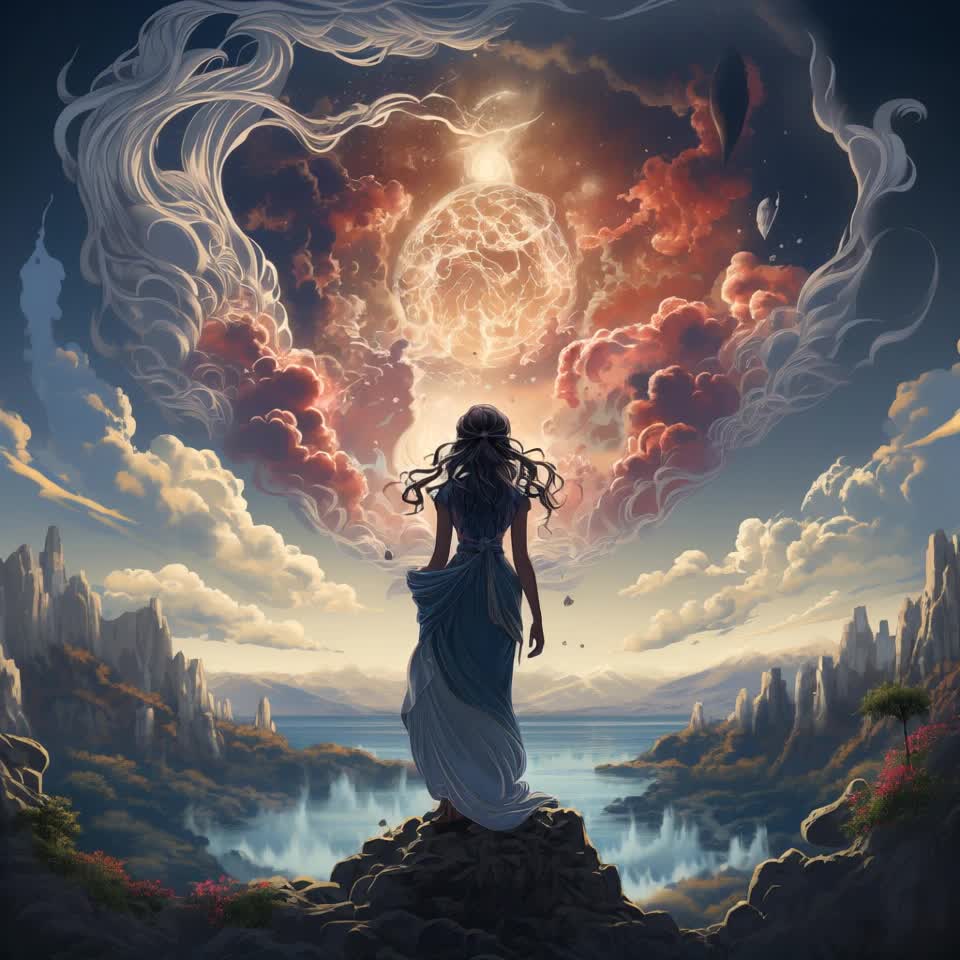 Ambient, epic, soundtrack, metalcore, dungeoncore, dark but empowering, haunting drums, thunderous bass, rifting guitars, atmospheric tones, distorted guitars, raw vocals, glitchy effects