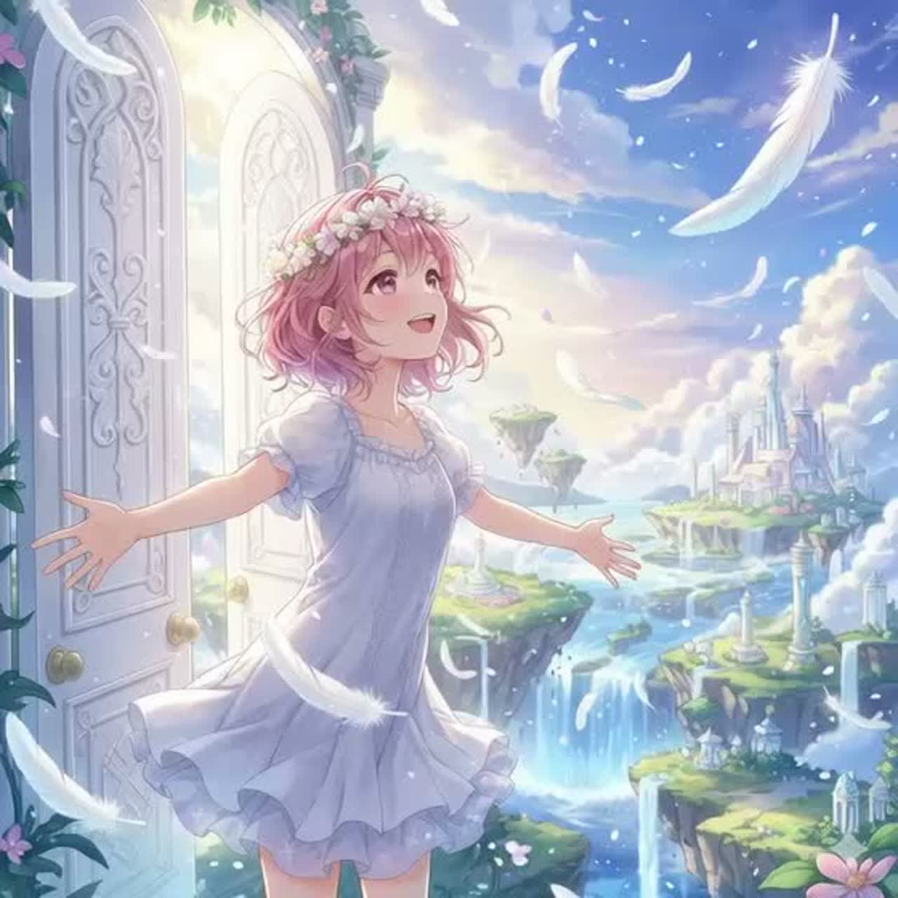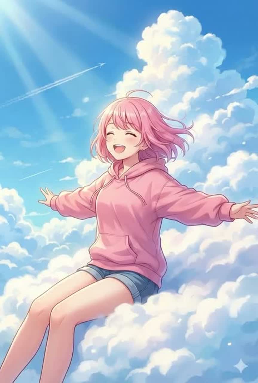 Emotional healing J-Pop ballad, very catchy and heartwarming melody, cute bright female vocal (super kawaii anime-style voice, soft, cute, sweet and gentle high tone), soft acoustic guitar and warm piano base, floating synth pads like drifting clouds, light lo-fi beats in the chorus, sparkling chimes and soft strings, dreamy and fluffy cloud-like atmosphere, uplifting yet slightly bittersweet feeling, tempo 85–92 BPM, key of F major or A major, lots of gentle “ooh~” and “la la la” backing vocals, super emotional and comforting vibe, perfect for healing tired hearts