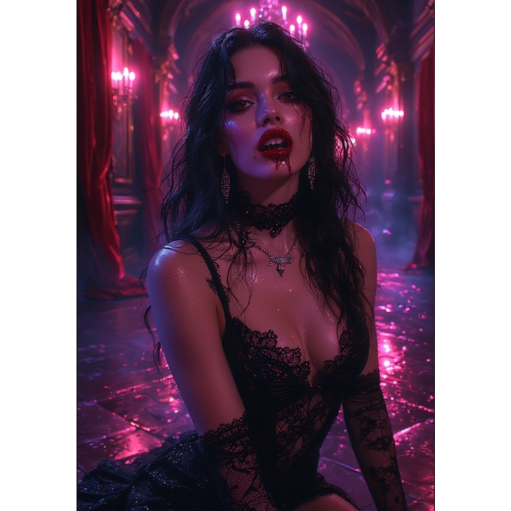 Dark electro-pop with a moody, sensual edge: deep pulsing bass and shadowy synths layer under trap-inspired, hypnotic percussion—crisp hi-hats and distorted bass hits, Seductive, confident female vocals intertwine with eerie reversed breaths, subtle growls, ghostly whispers, and haunting harmonies, Melodies undulate, rising and falling ominously, The chorus hits irresistibly, pulsating with desire and danger, while cinematic builds and glitchy echoes heighten the late-night Halloween club atmosphere—intoxicating, modern, and mysterious