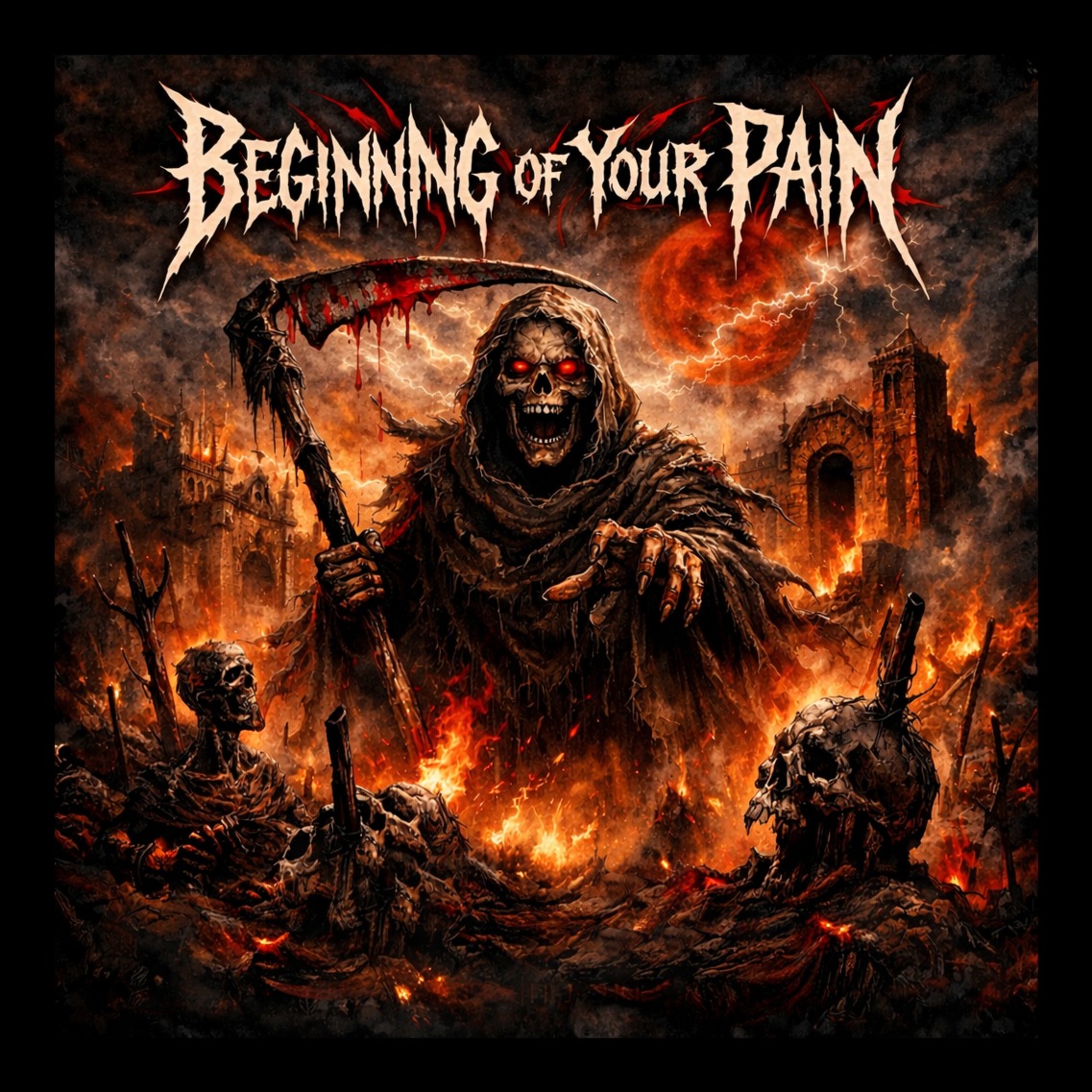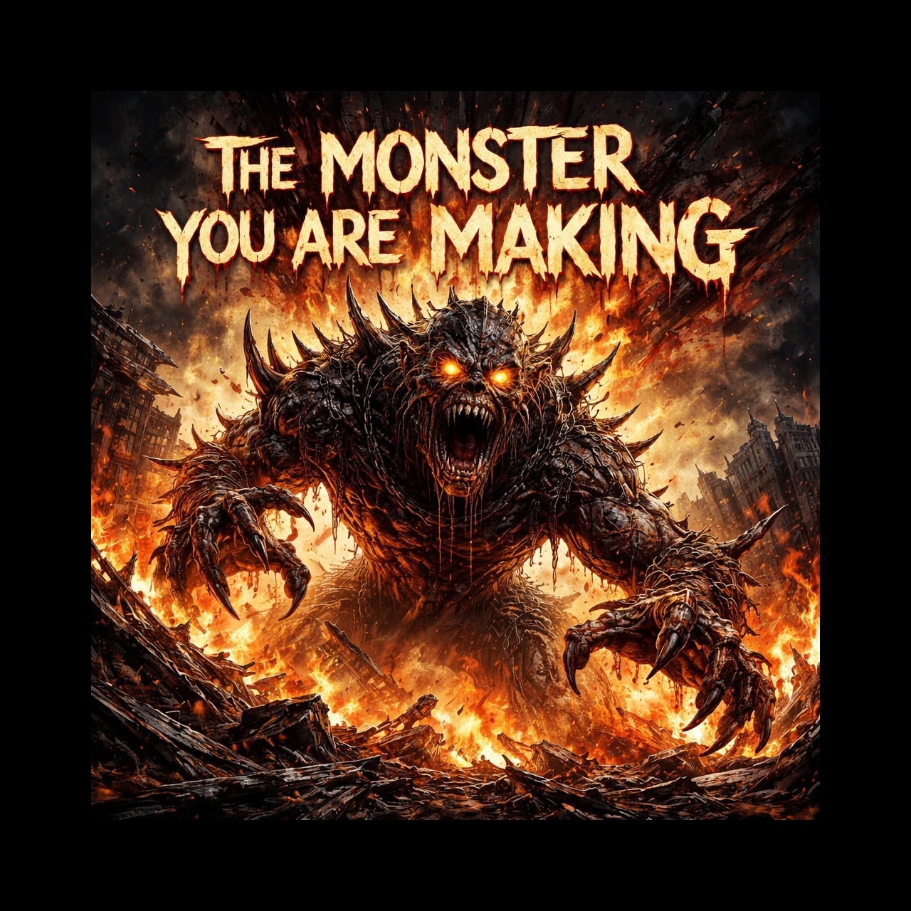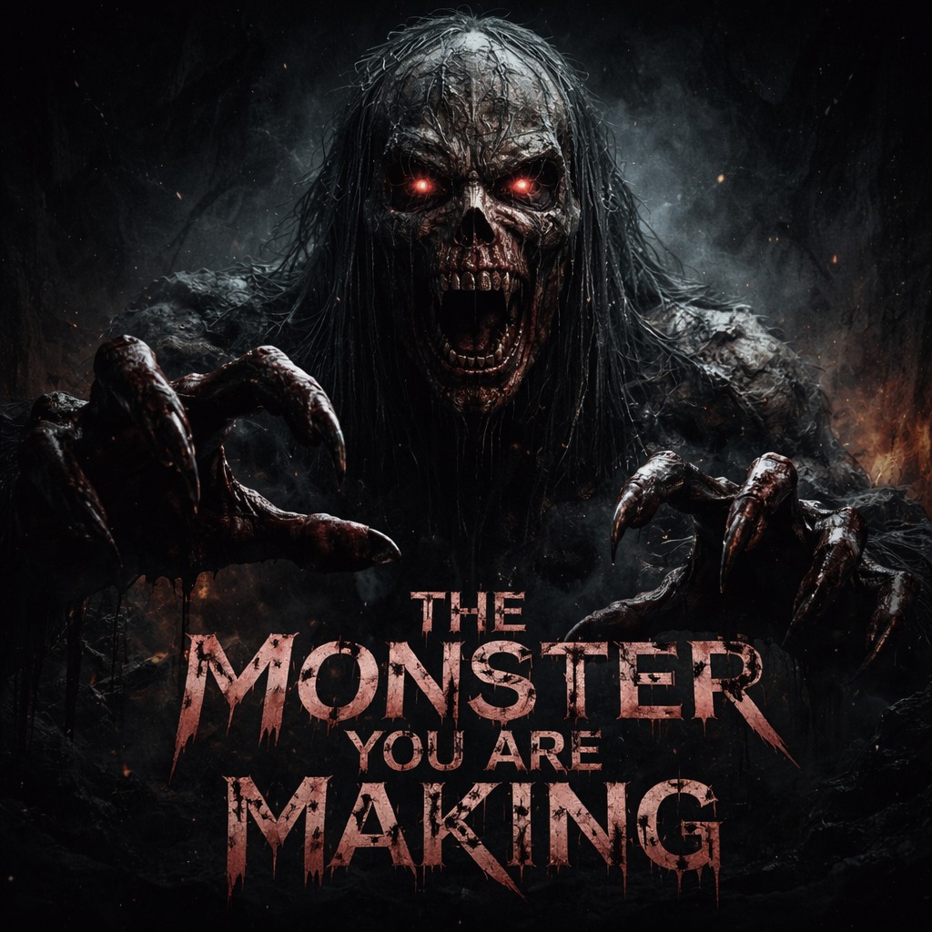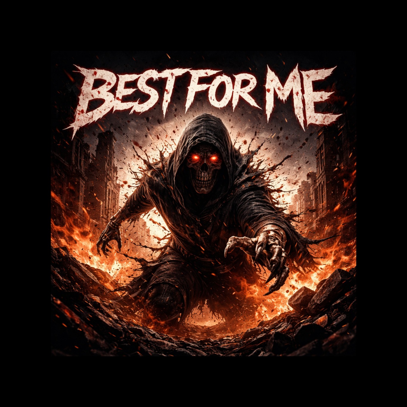 The track opens with downtuned, sludgy guitars and cavernous, doom-laden synths, Trap hi-hats tap alongside thunderous kicks, blending distorted 808s with guttural bass, Verses weave aggressive rap flows over droning riffs, while choruses erupt with growling, chanted vocals and seismic drums, Ambient horror textures and metallic hits punctuate breakdowns before a chaotic, feedback-drenched finale