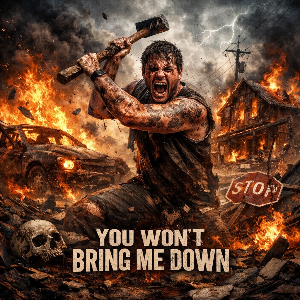 Aggressive metalcore with southern sludge and chaotic hardcore influence, Drop B tuning, 92 BPM, Mid-tempo, groove-driven riffs with low-mid heavy palm-muted guitar, dissonant accents, half-time drums, Vocals are primarily restrained, bitter hardcore screams with conversational phrasing, escalating into raw desperate shouting during rupture sections, Lyrics are confrontational, psychological, and emotionally exhausted, focused on survival and defiance under pressure, Production is dense, dry, and oppressive, with vocals sitting inside the mix, No clean vocals, No melodic hooks, End unresolved, collapsing rather than resolving