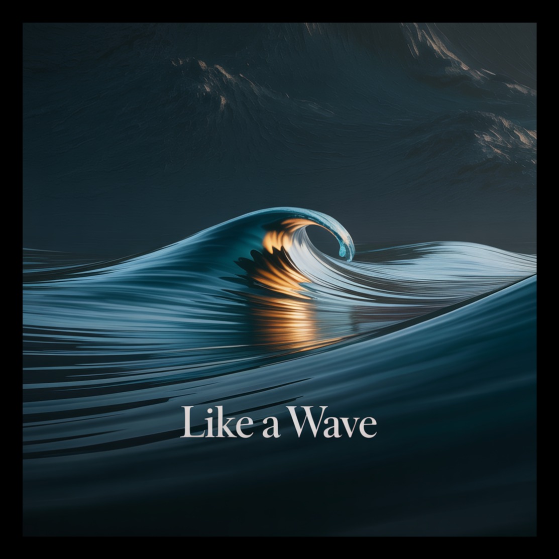 Ambient ocean and piano duet, Slow tempo (65–70 BPM), Begin with gentle ocean waves and soft atmospheric pad, Male vocal opens—low, calm, grounded, warm tone, steady delivery (represents the ocean), Minimalist piano enters with spaced notes, Female vocal enters in verse 2—airy, intimate, flowing, emotional but restrained (represents the wave), Alternate lines briefly, then blend, Chorus features both voices in harmony (female above, male below), smooth and immersive, Subtle ambient textures build gradually, no heavy percussion, Bridge expands with layered harmonies and deeper ocean ambience, creating a swelling, cinematic feeling, Final chorus fully unified duet, No guitars, no strong drums, Reverb-rich, peaceful, flowing atmosphere, Focus on breath, connection, and emotional depth