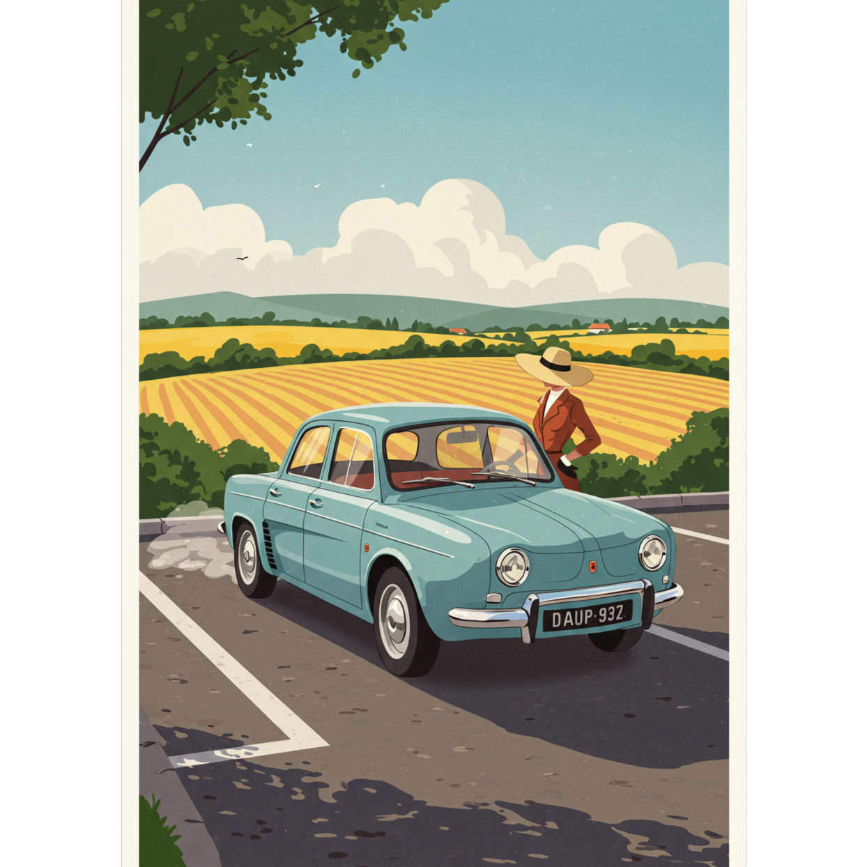 Theme: A sophisticated madam gracefully giving way to cars while leaving a parking lot, turning an everyday moment into a charming ritual
