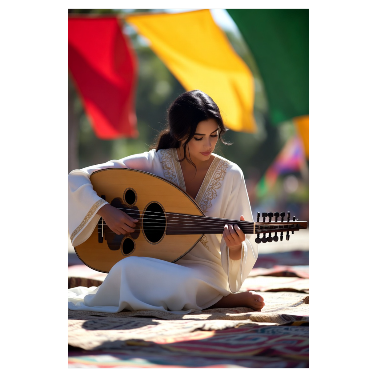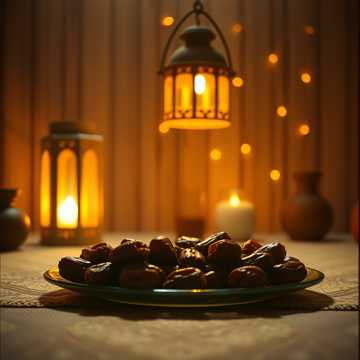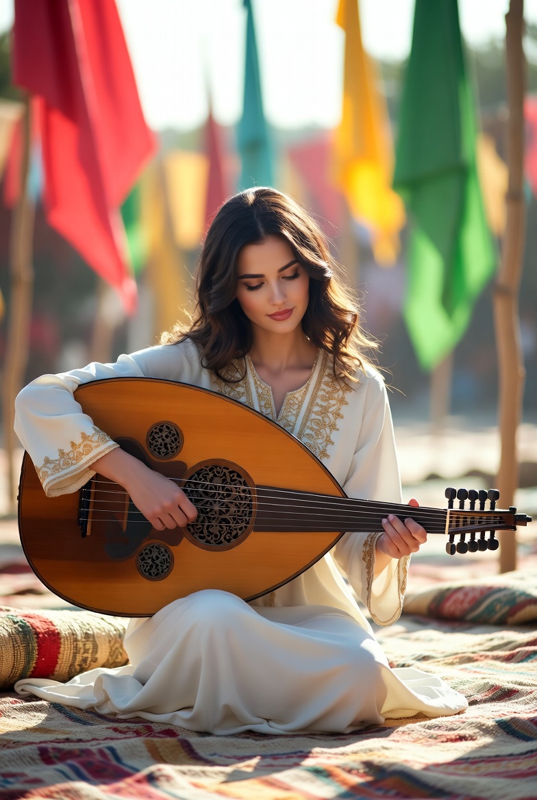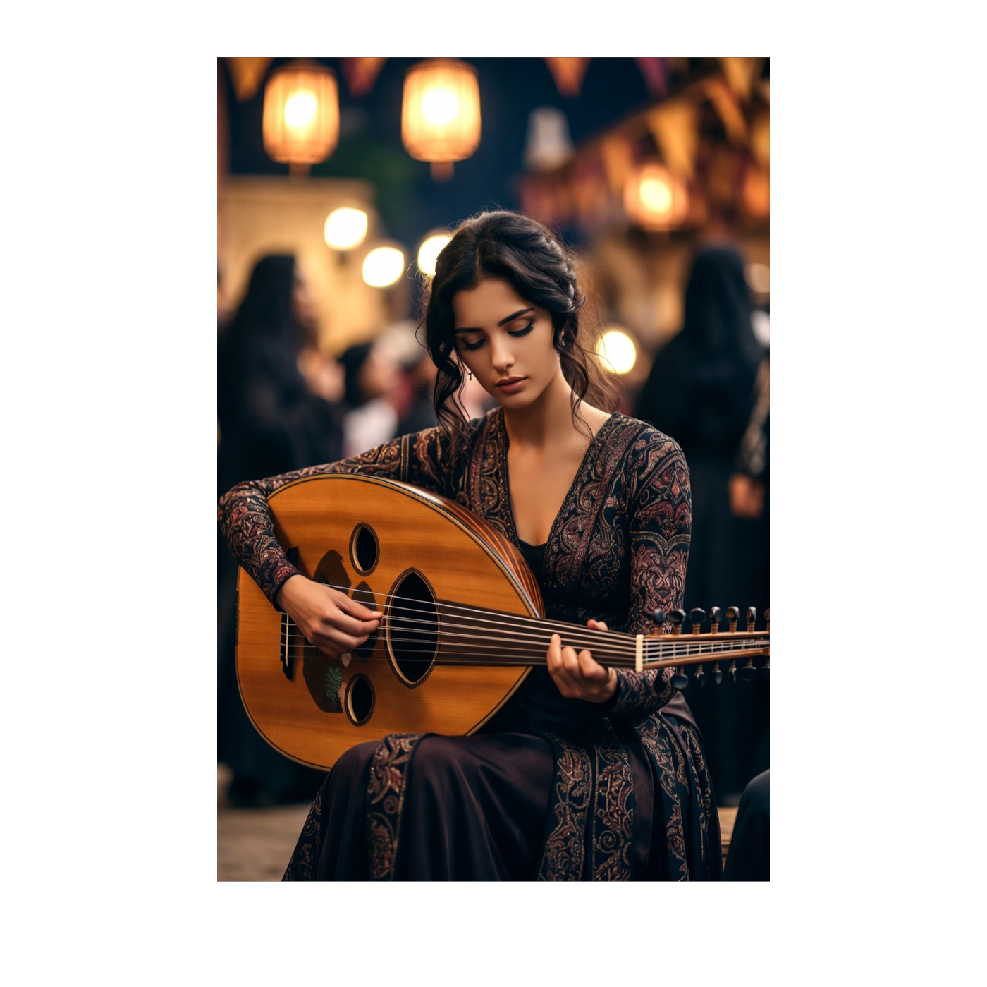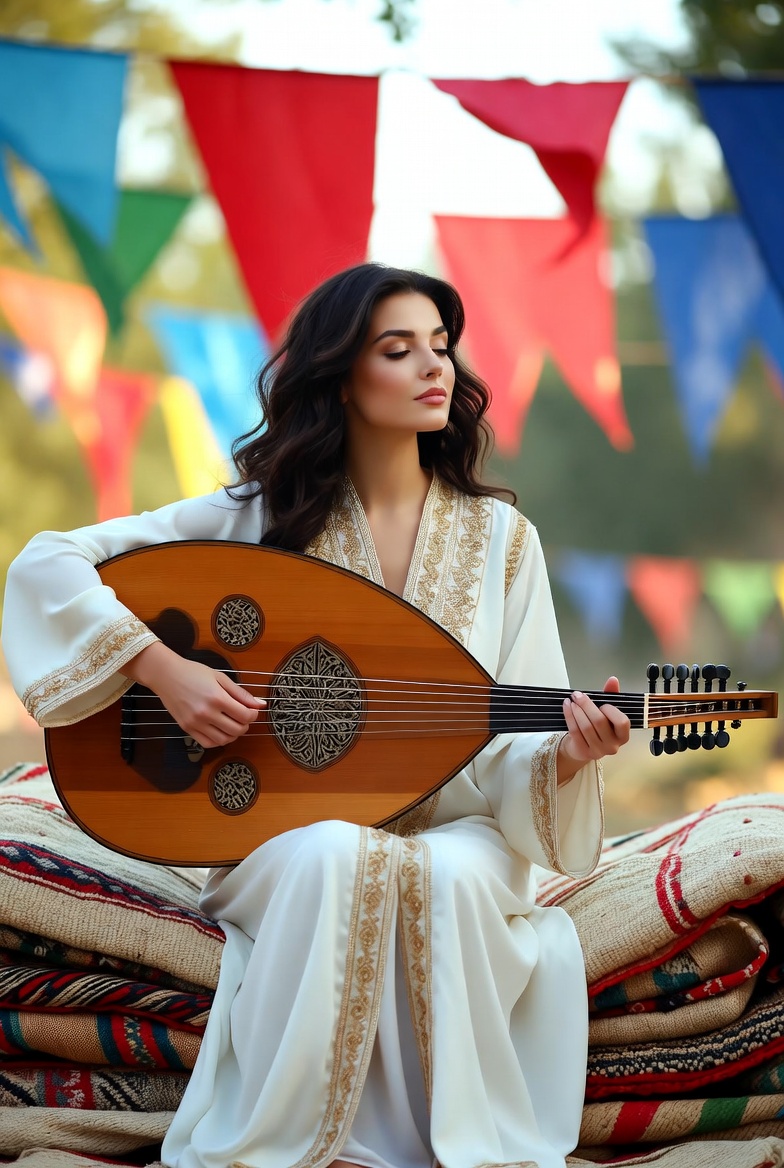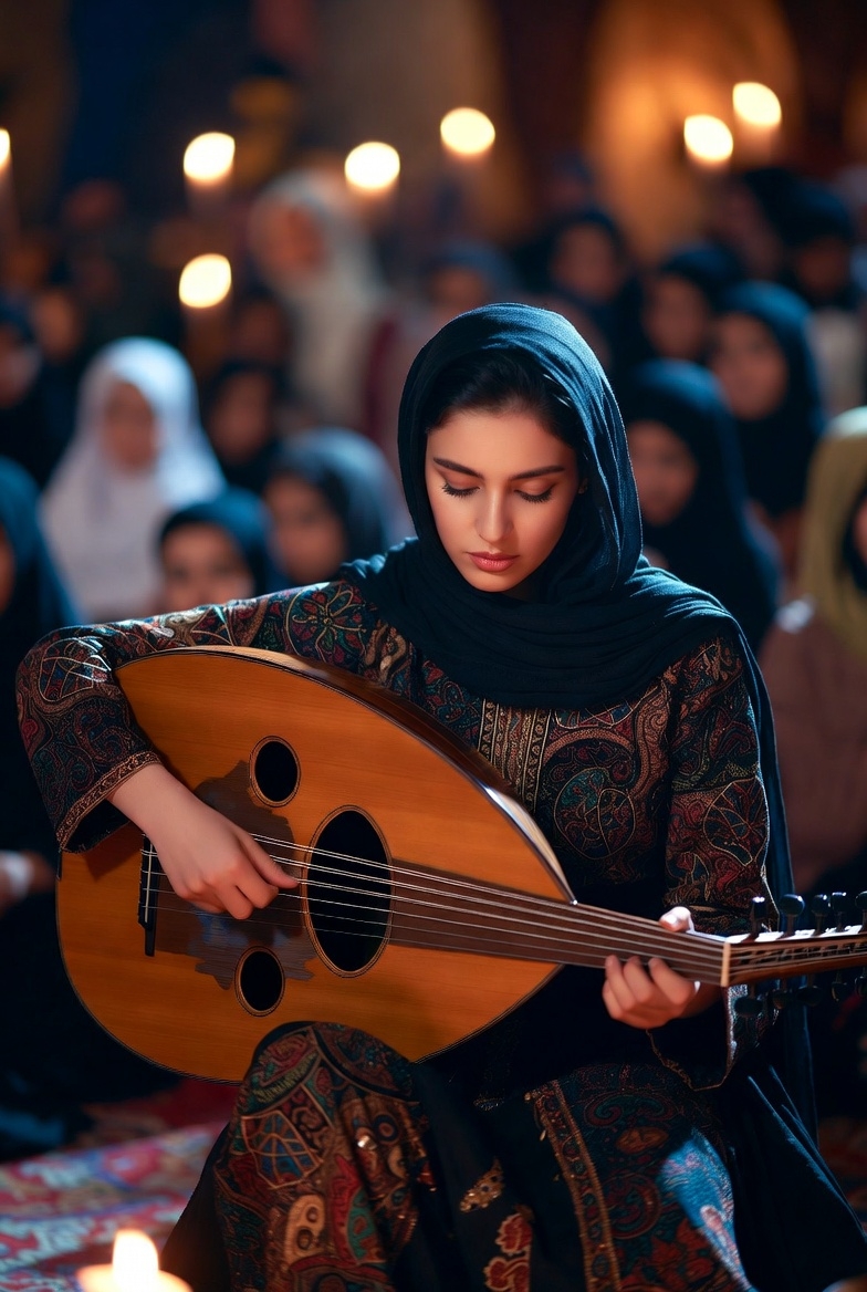 Classical Persian, arabesque, a friendly, melodic instrumental led by solo oud, The main theme is simple and welcoming, returning often, Melodies are memorable and repeatable, inviting familiarity, Strings provide gentle harmonic support and light call-and-response moments, Tempo is steady and relaxed, Mood is communal, warm, and human—Ramadan as shared presence rather than solitude, Natural reverb, close recording, soft ending, Maqam: Rast with Bayati touches