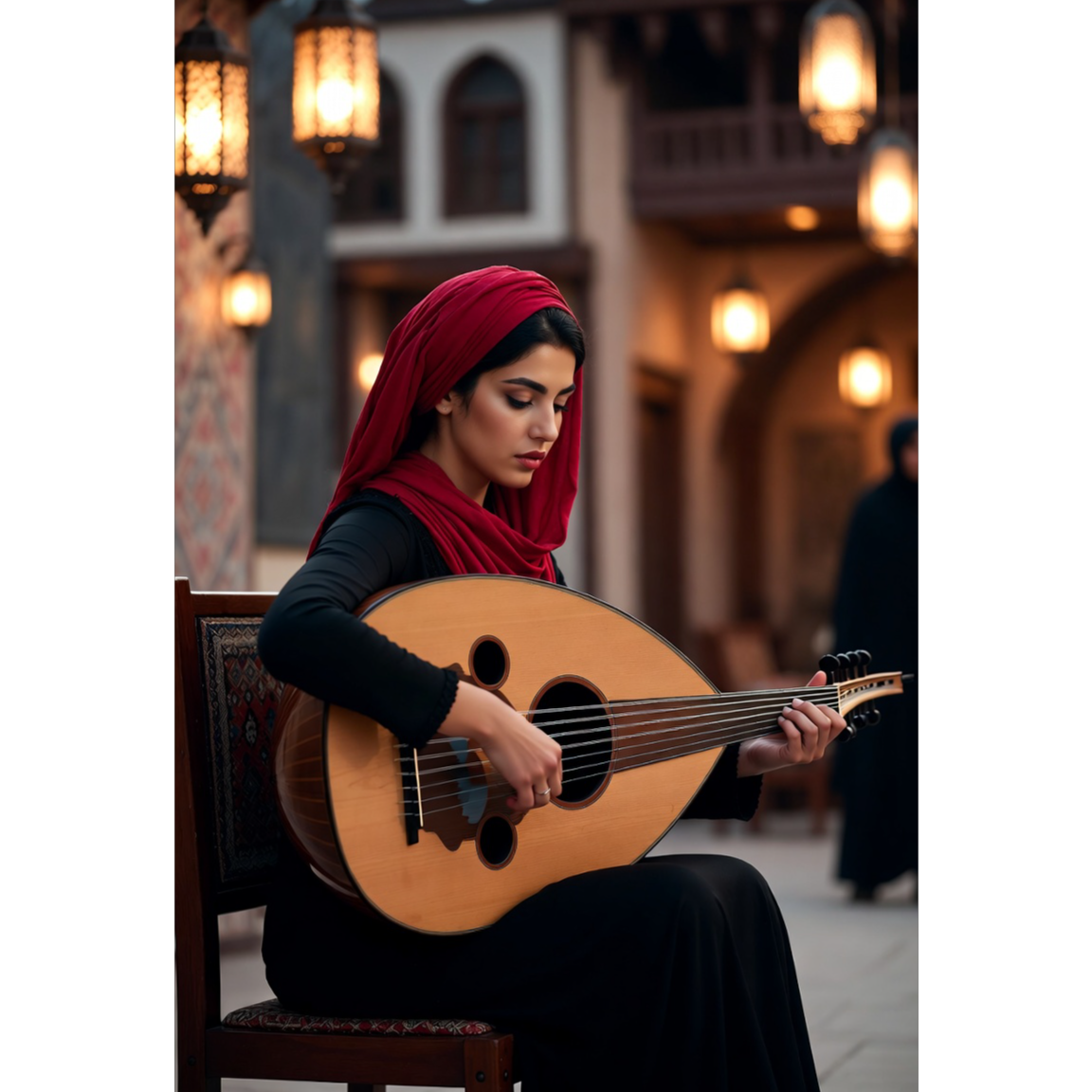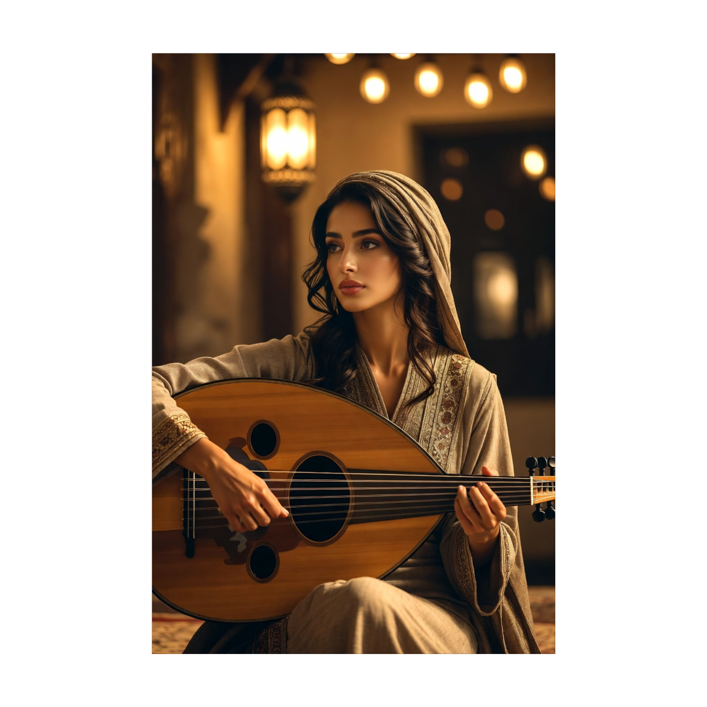 Solo oud carries a calm, hopeful melody with clear phrasing and return, Melodies are memorable and repeatable, offering reassurance through familiarity, String ensemble supports with sustained harmonies and soft melodic reinforcement, Tempo remains steady and unforced, Mood is peaceful, optimistic, and warm—Ramadan as quiet confidence, Cinematic but intimate, ending in gentle stillness