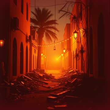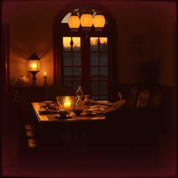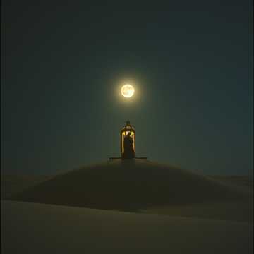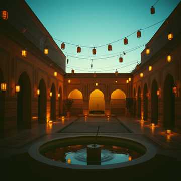 A serene, nocturnal instrumental led by solo oud, embodying the gentle unfolding of night during Ramadan, Begin with a free, unmetered oud taqsim in Maqam Bayati—soft, breathing phrases with delicate microtonal inflections, allowing silence to shape the melody, Gradually settle into a slow, steady pulse around 64 BPM, Introduce a full string ensemble (violins, violas, cellos, light basses) as a subtle, atmospheric veil: sustained, legato harmonies that rise and fall slowly, never competing with the oud, Strings should feel like darkness arriving softly, not dramatically, Optional faint daf may appear late, barely audible, Mood is calm, inward, and reverent—evoking evening prayer, lamps dimming, and the heart turning inward, No virtuosity, no brightness, Natural hall reverb, close-mic oud, wide but hushed cinematic strings, ending in quiet stillness, Maqam: Bayati with subtle Nahawand color