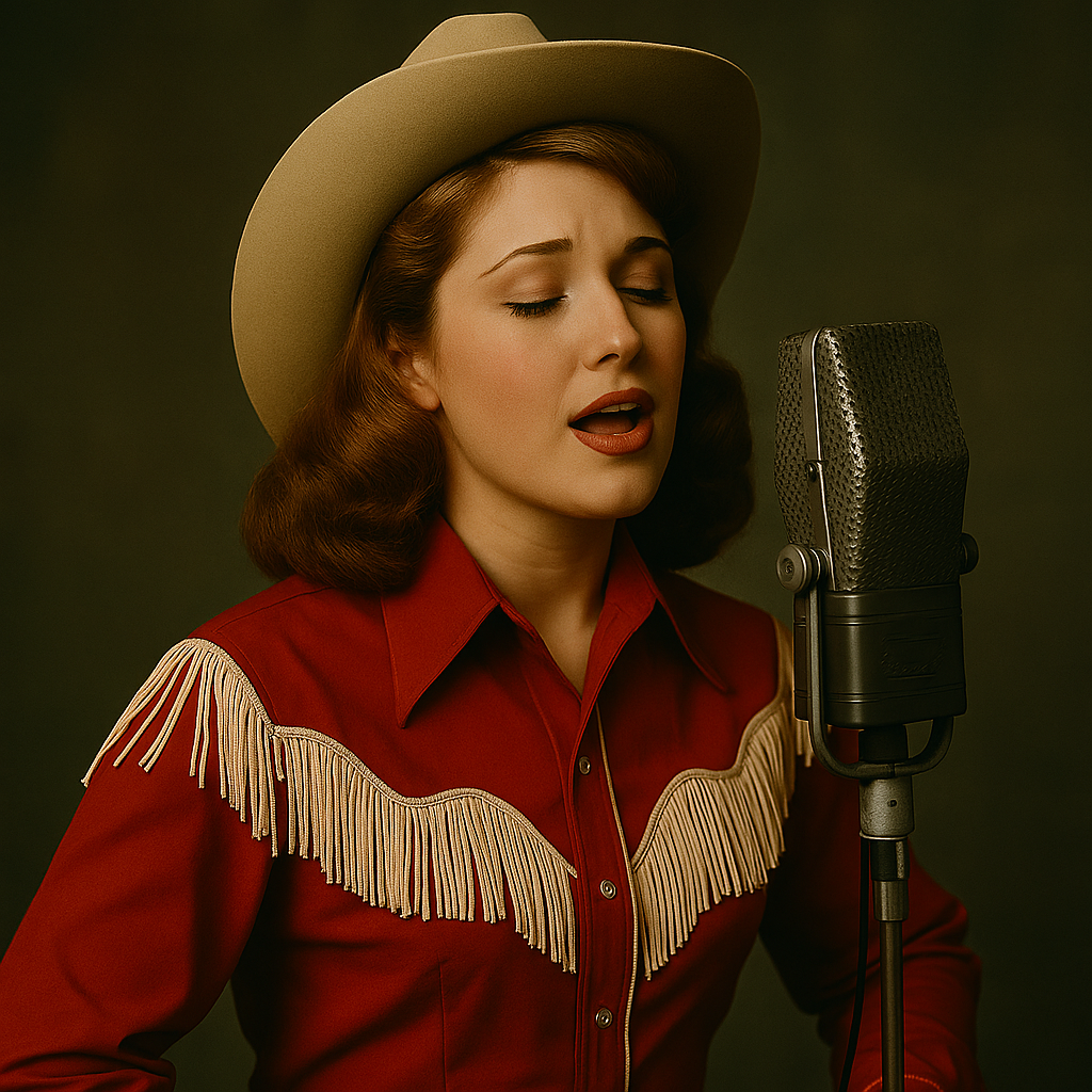 1958 Nashville country ballad with female vocals, Gentle acoustic guitar fingerpicking, upright bass, soft brushed snare, and warm fiddle fills, The mood is tender and nostalgic, like Hank Williams meets the Carter Family with a touch of early PatsyCline, Recorded with vintage tube mic warmth and light tape echo, Tempo slow waltz, heartfelt and sincere vocals, natural phrasing, and emotional storytelling