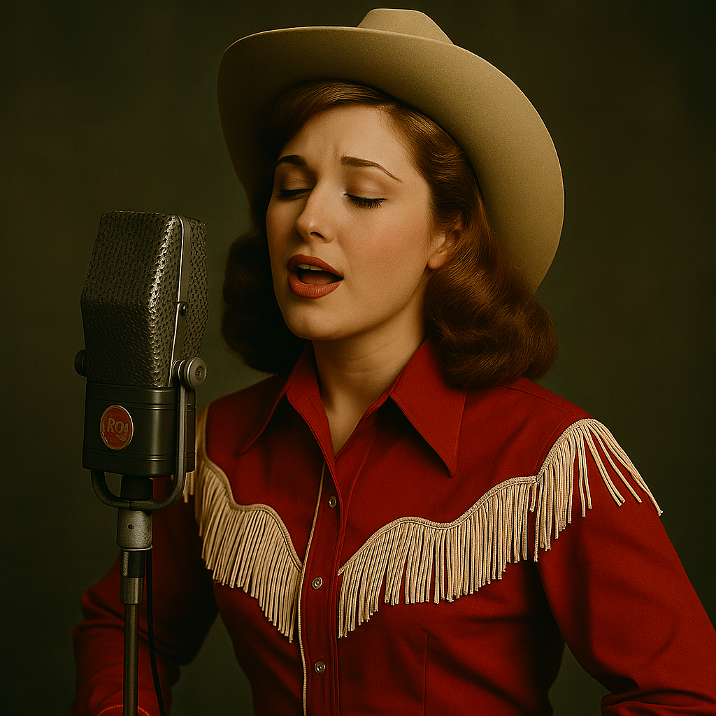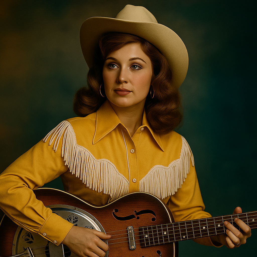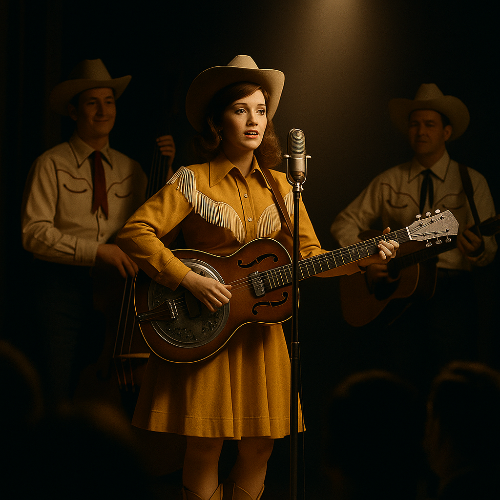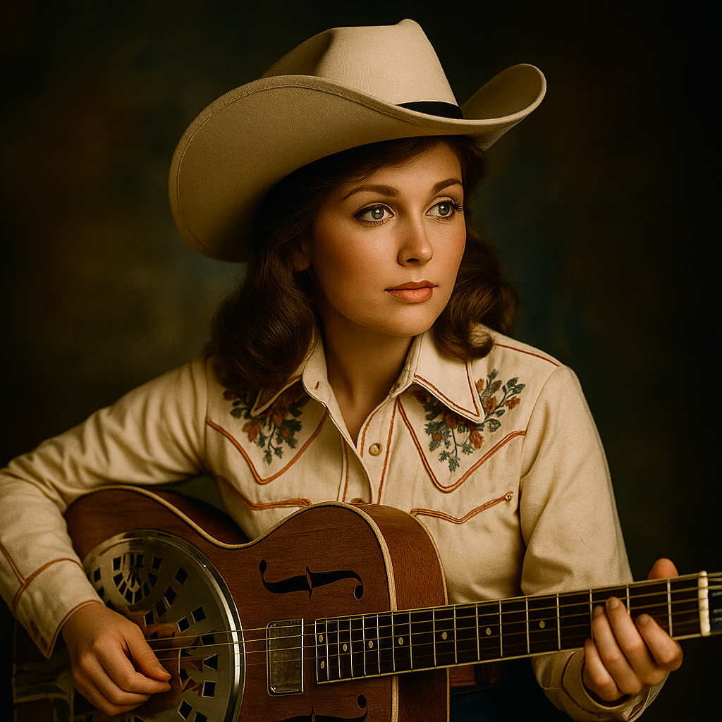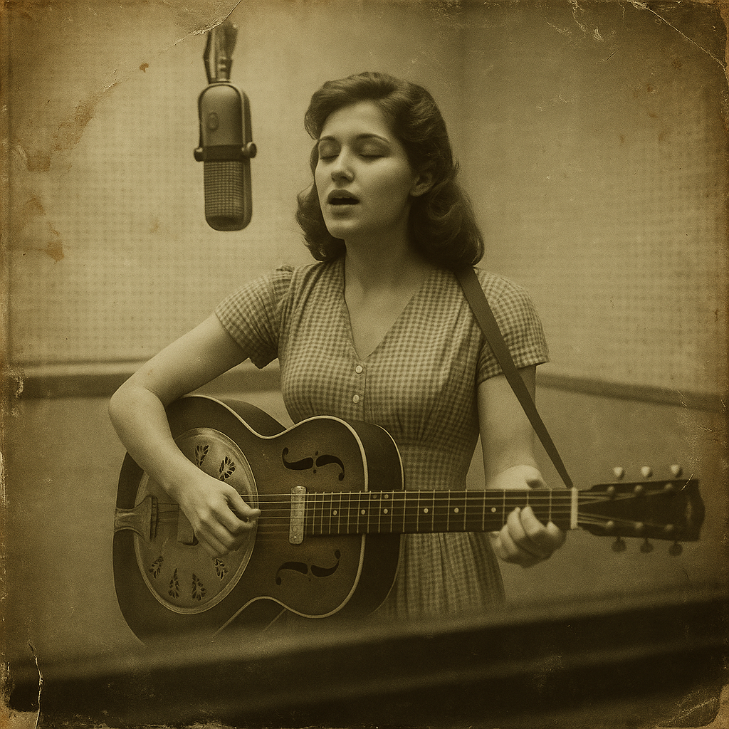 1958 Nashville country with female vocals, Gentle acoustic resonator guitar fingerpicking, upright bass, soft brushed snare, and warm fiddle fills, The mood is tender and a bit bluesy, nostalgic, like Hank Williams meets the Carter Family with a touch of early PatsyCline, Recorded with vintage tube mic warmth and light tape echo, heartfelt and sincere vocals, natural phrasing