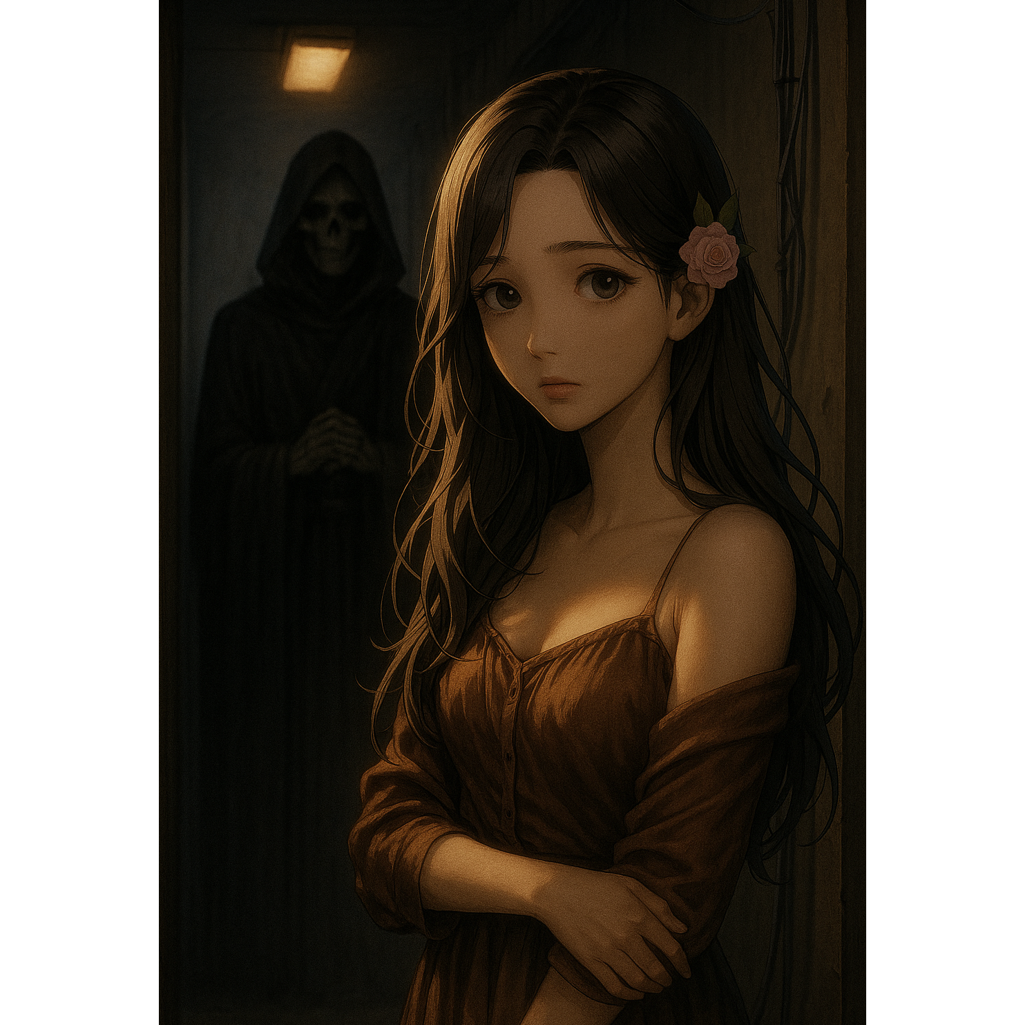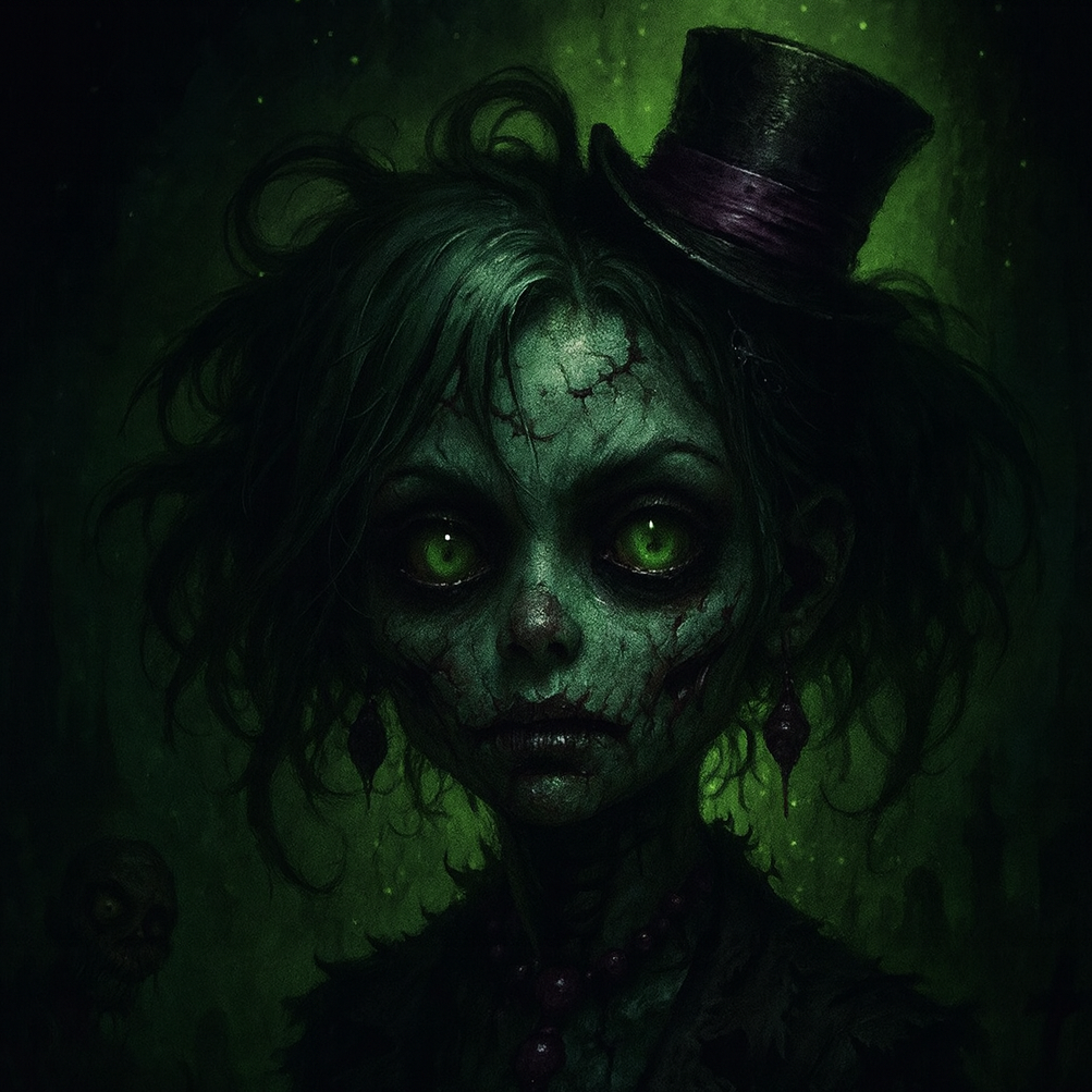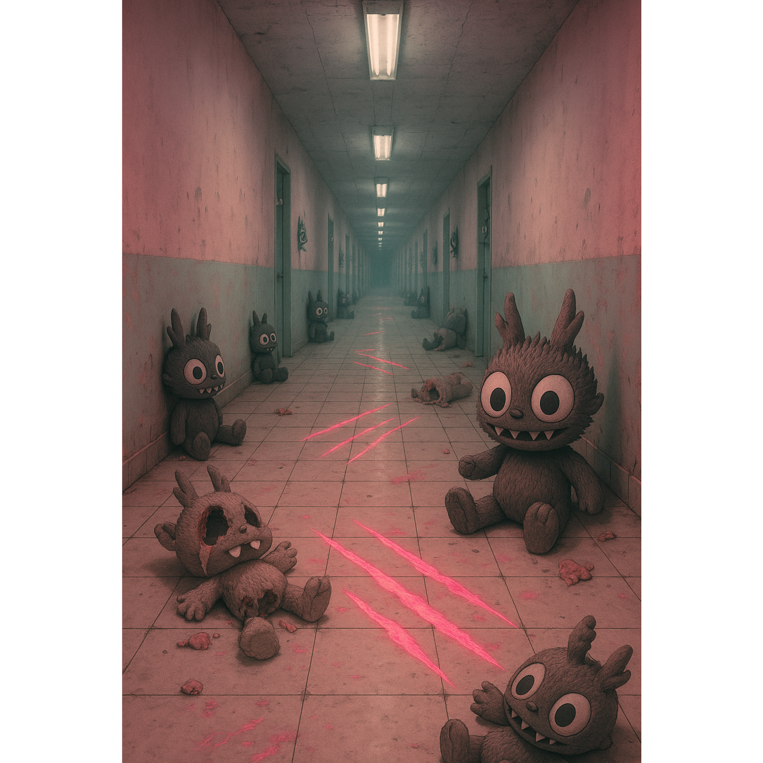 A track born in a liminal corridor: vocals are extremely deep, guttural, raw and menacing, like a demon crawling from the abyss, Slow, deliberate phrasing, throat grit and chest resonance, kept dry with faint room reverb — no clean tone, only funeral doom textures, Into this weight bursts distorted kawaii: bitcrushed, pitched-up fragments, playful yet violent, like broken sugar masking rage, They clash and overlap, grotesque cuteness scraping against abyssal growls, Midway, a melodic interlude blooms in Seigmen’s Norwegian aesthetic: cold minor chords, metallic bass, restrained synth, gothic space that feels endless yet fragile, It widens the soundscape before collapsing back into the growl, heavier for the beauty it destroyed, The result: a ritual of contrasts — doom and kawaii distortion colliding in a spectral hall of rage and sweetness