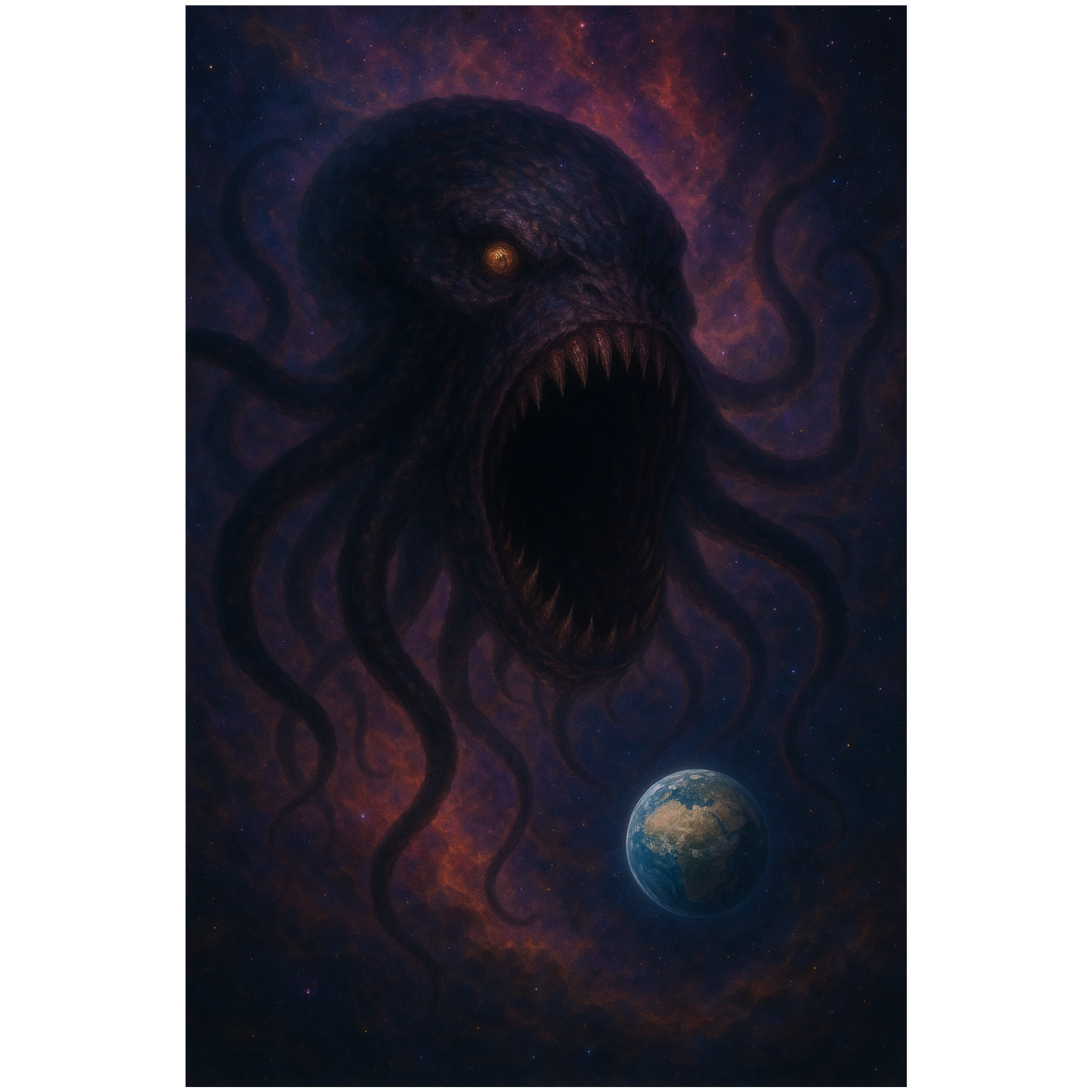 Extremely deep, guttural growl with a dark, menacing tone, like a demonic monstrosity creature rising from the abyss, Harsh rasp with heavy throat grit and deep chest resonance, Slow, deliberate delivery with natural sustain and overtones of distortion, evoking doom metal and funeral doom vocalists, Keep the voice dry and raw, with slight room reverb, no clean singing, only guttural textures