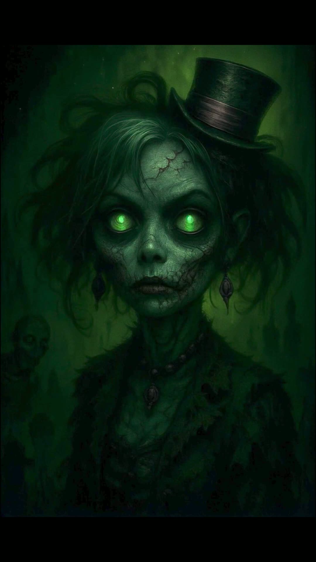 A witch-punk darkwave fusion in F Phrygian↔Lydian, ~150 BPM, 4/4, Analog bass rumble, spectral pads, warped gtr stabs, gothic synth layers detuned, Hypnotic intro: pulsing ASMR textures, wet breath-heavy whispers (dual sweet/twisted), close-mic syllable fragments, spectral coos/hums, Verse drive: syncopated gtr + bitcrush risers, call/response chant, whispered ad-libs, glitch drums, sidechain bass locking to kick, Pre build: filtered tom run, hiss risers, tape wobble FX, Chorus explosion: crowd-pack chant hooks, octave leads in saturation bloom, stacked vox doubles, parallel-comp drums, cymbals splash under crisp highs, Bridge fracture: glitch-groove collapse, bitcrushed vox, detuned swells, spectral detritus echoing, Final chorus: dense octave lead + chant-stack wall, oversaturated drum smash, whisper undercurrent threading mass vocals, Mix chain: centered lead vox, tight low-end with comp/sidechain, crisp treble sheen, subtle tape sat, parallel comp bus, modern radio cut